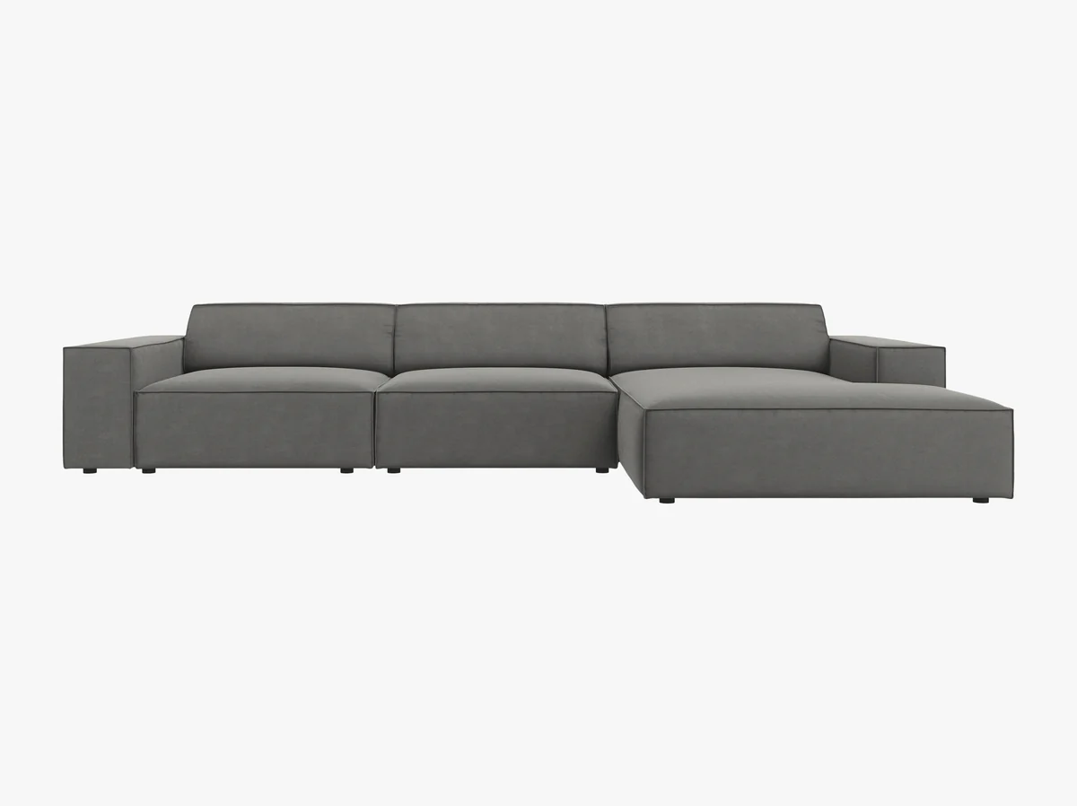 Narożnik Jodie przyciąga wzrok swoją nowoczesną, minimalistyczną estetyką, która harmonijnie wpisuje się w niemal każde wnętrze. Dzięki prostym liniom i subtelnym detalom Jodie doskonale współgra z wnętrzami, które cenią czystość formy i ponadczasową elegancję. Jej prosty, uniwersalny design sprawia, że jest idealnym wyborem zarówno do wnętrz klasycznych, jak i bardziej nowoczesnych – od loftowych, industrialnych przestrzeni, po przytulne, skandynawskie aranżacje. Geometryczne kształty poszczególnych modułów dodają sofie wyrazistości, podkreślając jej współczesny charakter. Szerokie podłokietniki oraz profilowane oparcia nie tylko zapewniają wygodę, ale również tworzą spójną, symetryczną sylwetkę mebla.