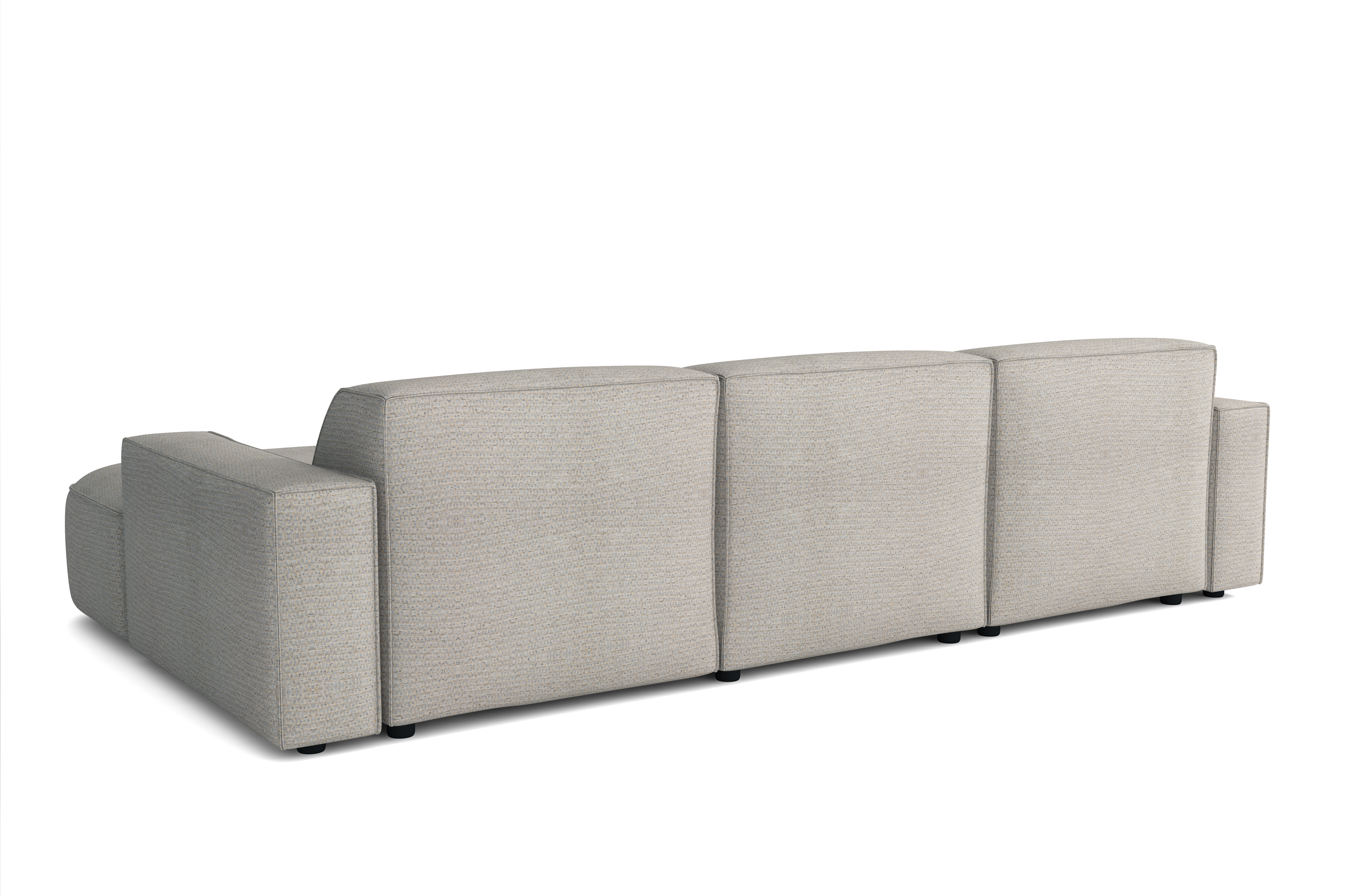Lennon w dużej narożnej konfiguracji z zaokrąglonym szezlongiem to propozycja dla osób, które szukają połączenia nowoczesnej elegancji, modułowej swobody i maksymalnego komfortu. Jego harmonijna forma oparta jest na szerokich, geometrycznych modułach, które płynnie łączą się z miękką linią organicznie wyprofilowanego szezlonga. Ten zaokrąglony element dodaje całości lekkości i charakteru, a jednocześnie tworzy idealną strefę relaksu — przestronną, wygodną i zapraszającą do odpoczynku w pozycji półleżącej.