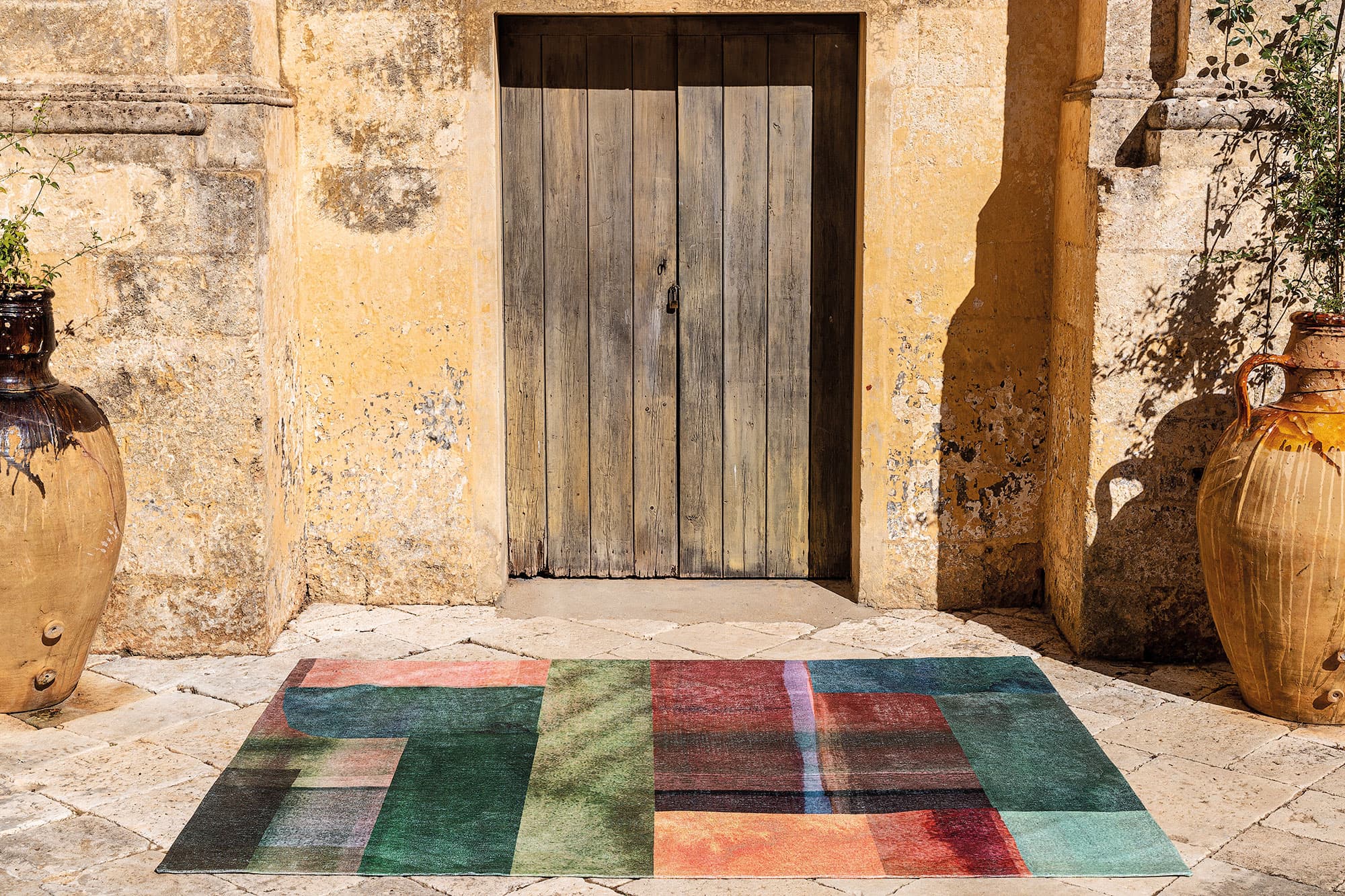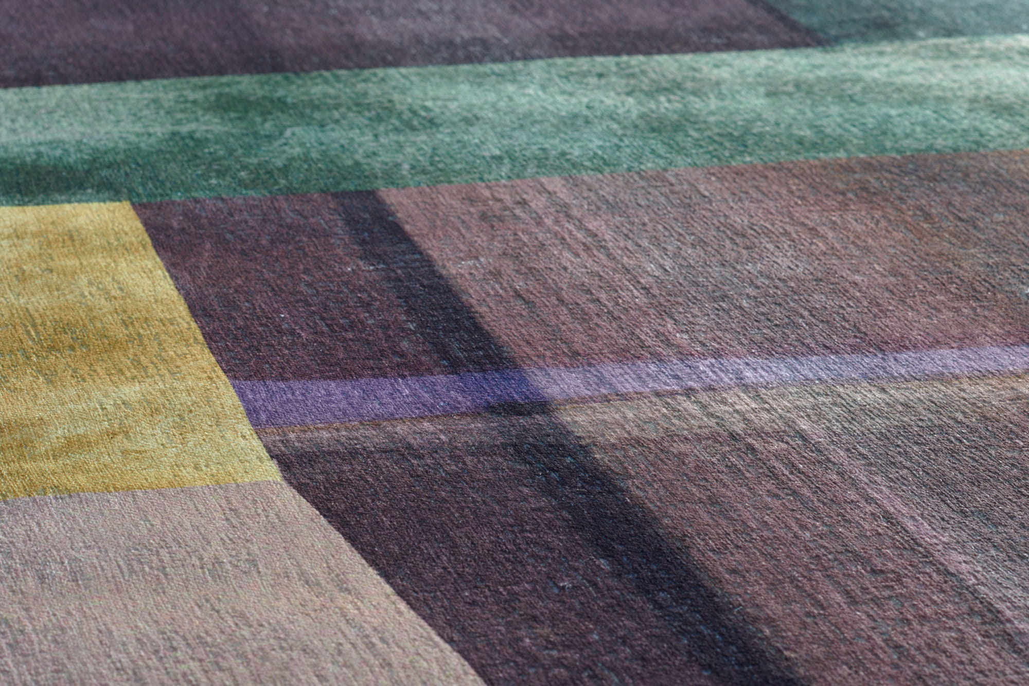 Dywan geometryczny to połączenie intrygującej struktury żakardowego splotu z nadrukiem, co pozwala uzyskać bardzo szczegółowy i pełen detali wzór, zapewniając jednocześnie wytrzymałość oraz większą niż w grubych dywanach odporność na odkształcenia pod ciężarem mebli.