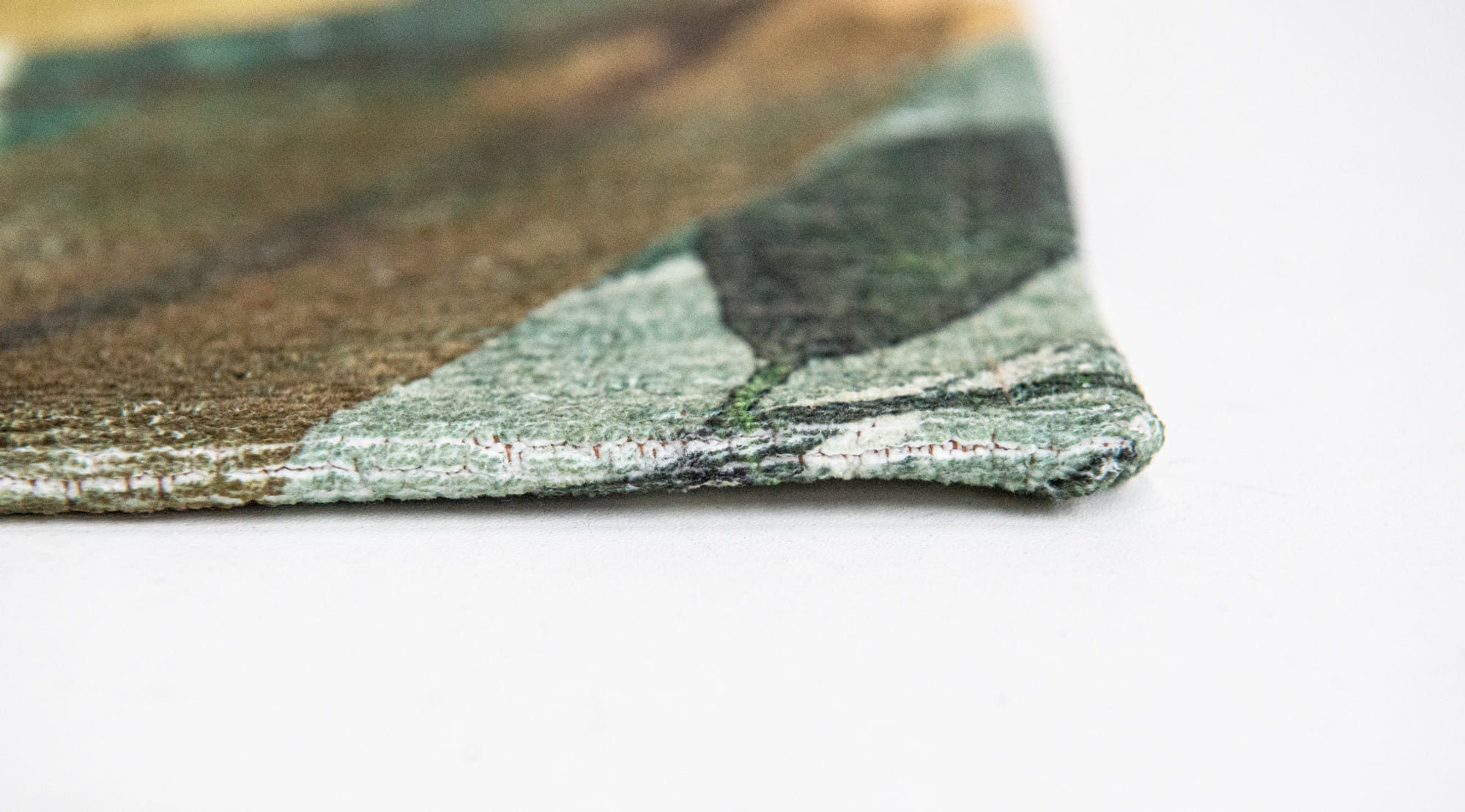 Wykonany jest w 85% z drukowanego poliestru szenilowego, z dodatkiem 15% poliestru fantazyjnego dzięki czemu dywan jest miły w dotyku, poprawia akustykę pomieszczenia, zaś jego oddychająca struktura utrzymuje ciepło, zatrzymując jednocześnie kurz i substancje chemiczne, tym samym oczyszczając powietrze, którym oddychasz.