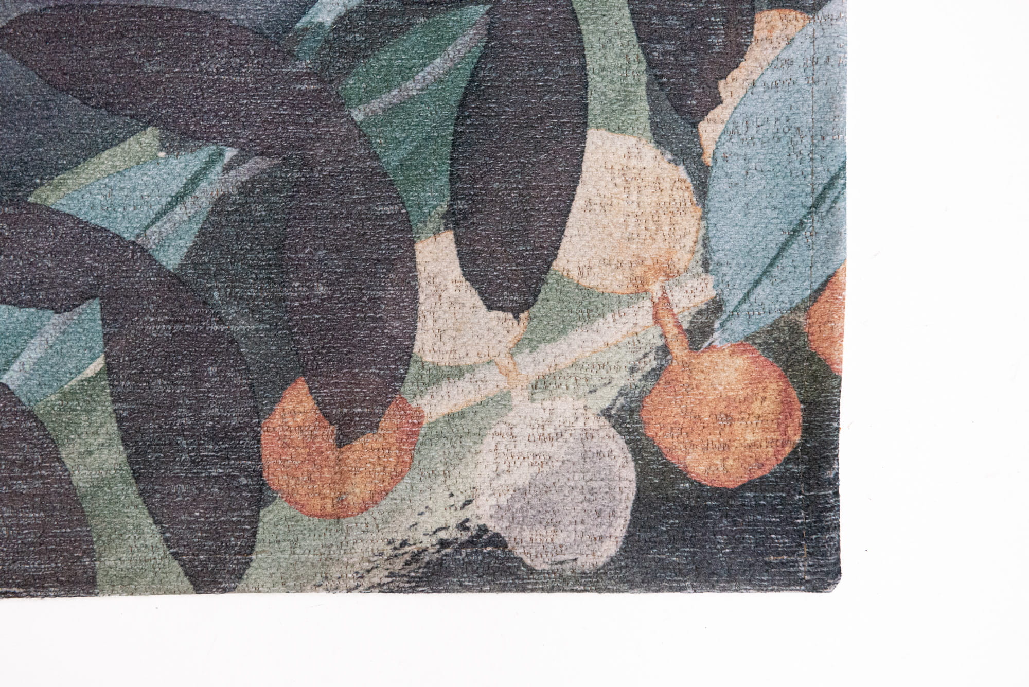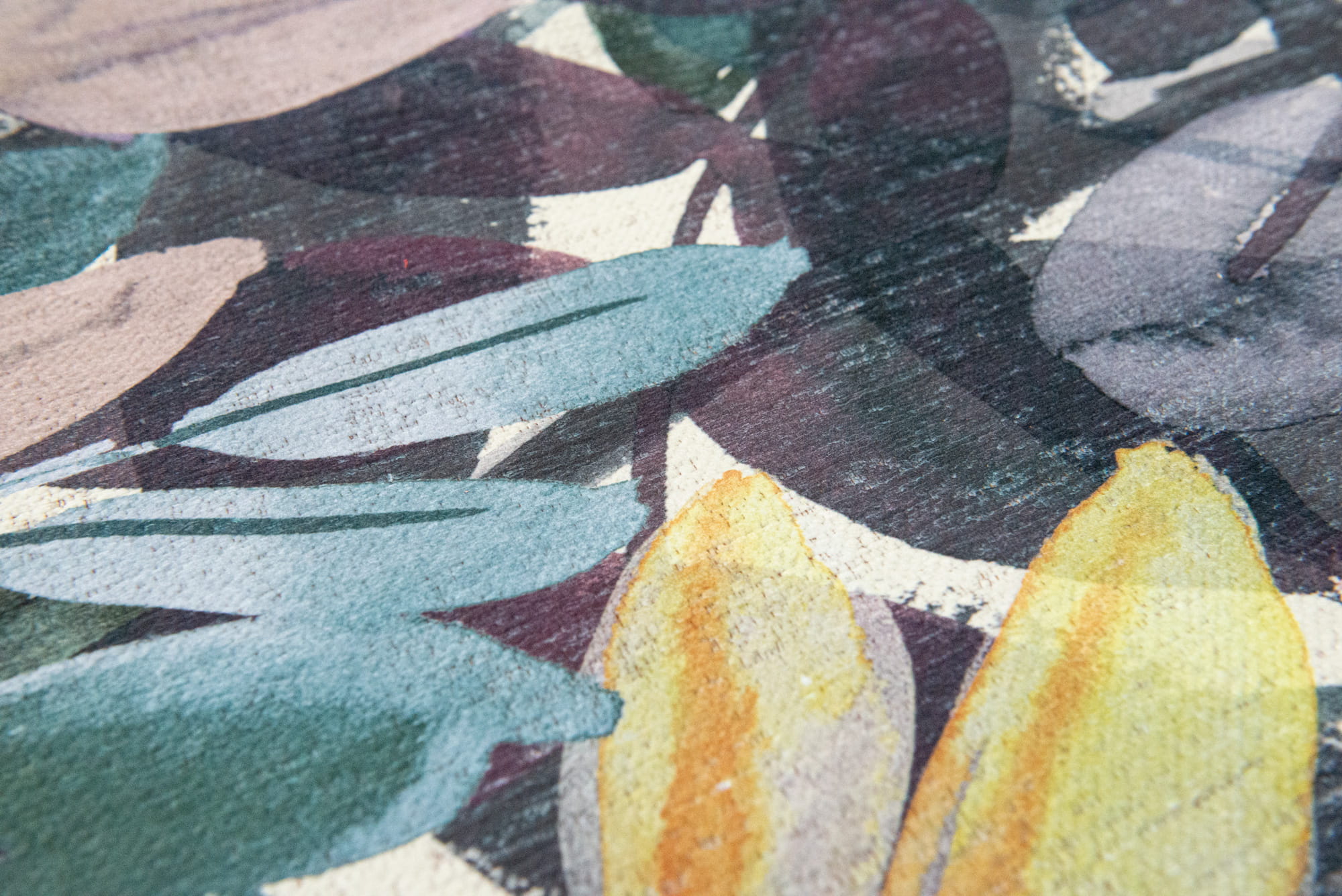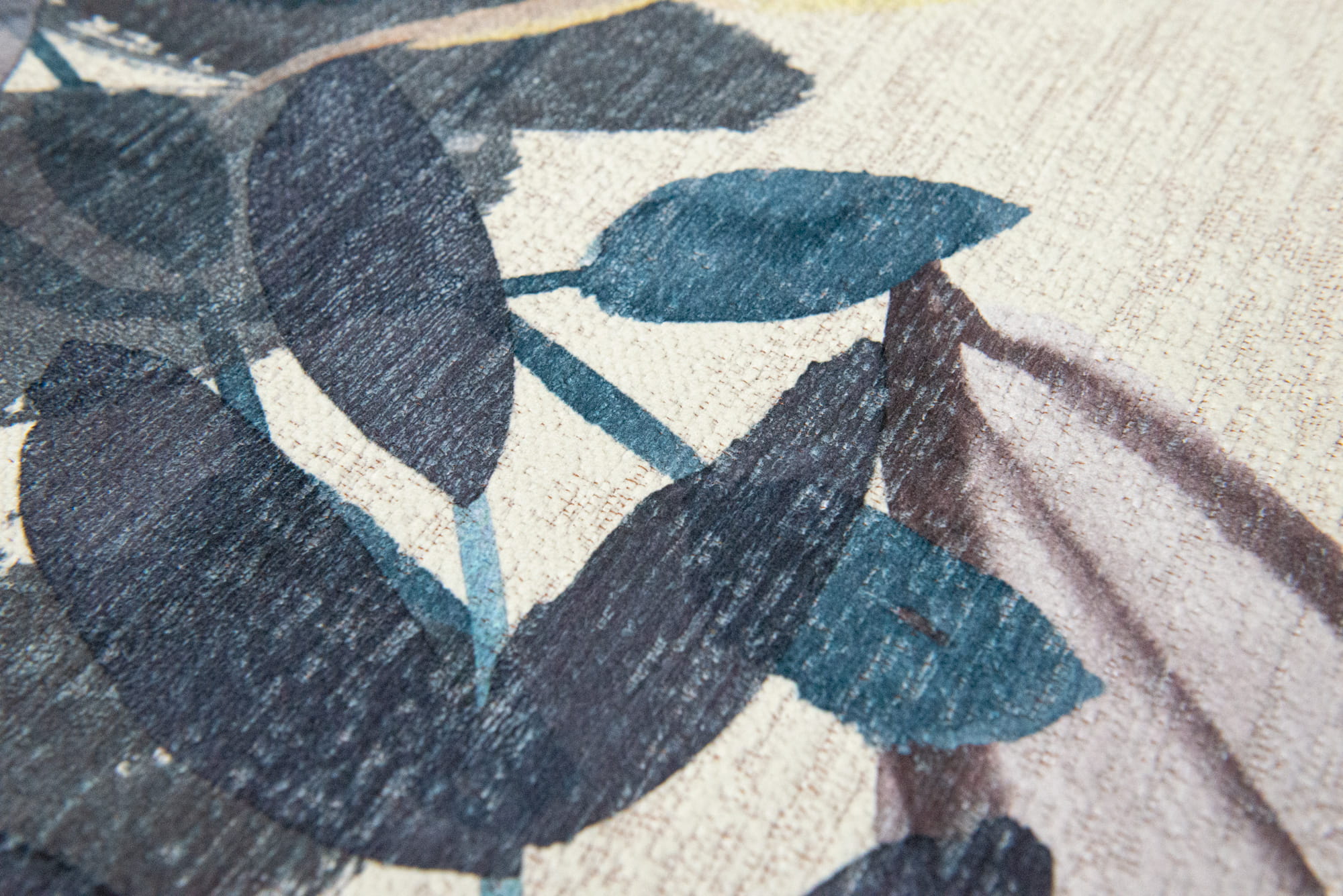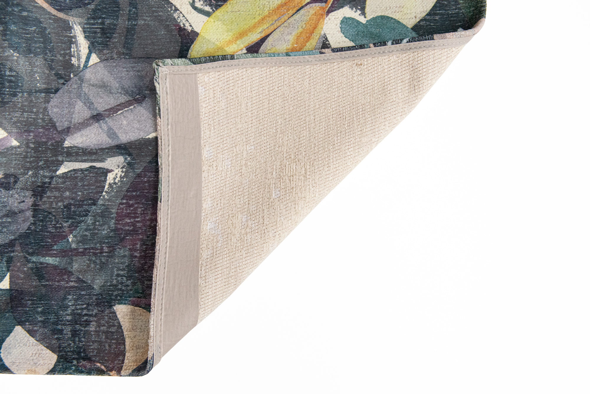 Dywan w kwiaty ukazuje nowe oblicze meksykańskiej kultury i sztuki. To połączenie żakardowo plecionego podłoża z nadrukiem transferowym, co pozwala uzyskać bardzo detaliczny wzór, zapewniając doskonałą wytrzymałość oraz większą niż w grubych dywanach odporność na odkształcenia pod ciężarem mebli. Ręcznie malowane liście i kwiaty nakładają się na patynowe tło ukazując delikatne przebłyski koloru elementów znajdujących się pod spodem.