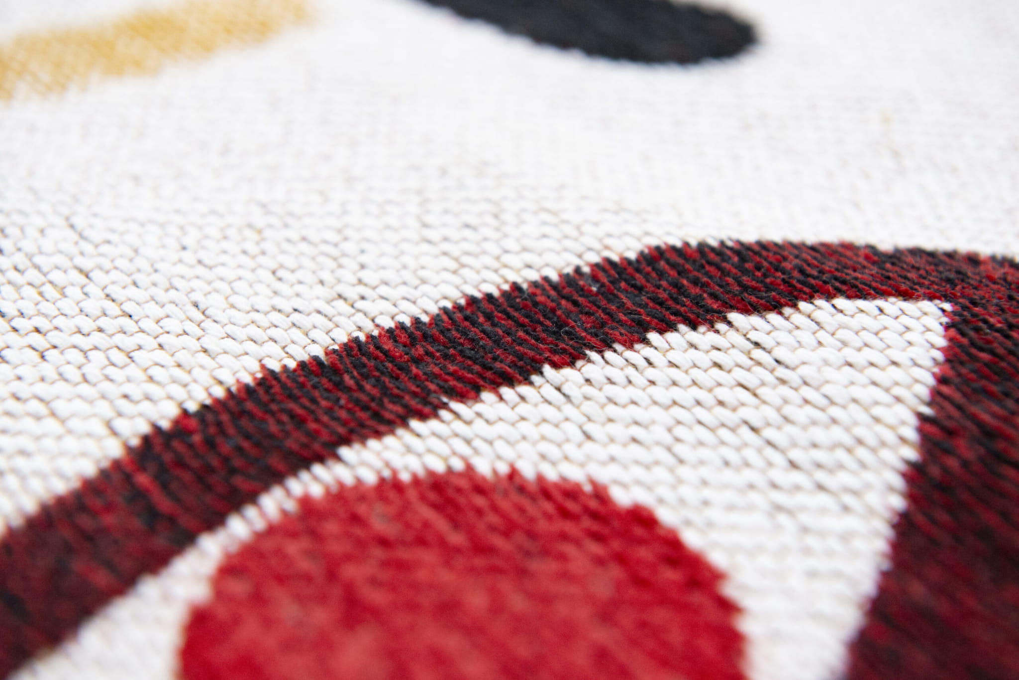 Tkanie na płasko gęstym szwem metodą żakardowego splotu pozwala uzyskać bardzo szczegółowy i pełen detali wzór, jednocześnie zapewniając wytrzymałość. Dzięki kauczukowej powłoce na spodzie dywanu, dywan jest stabilny i nie przesuwa się.
