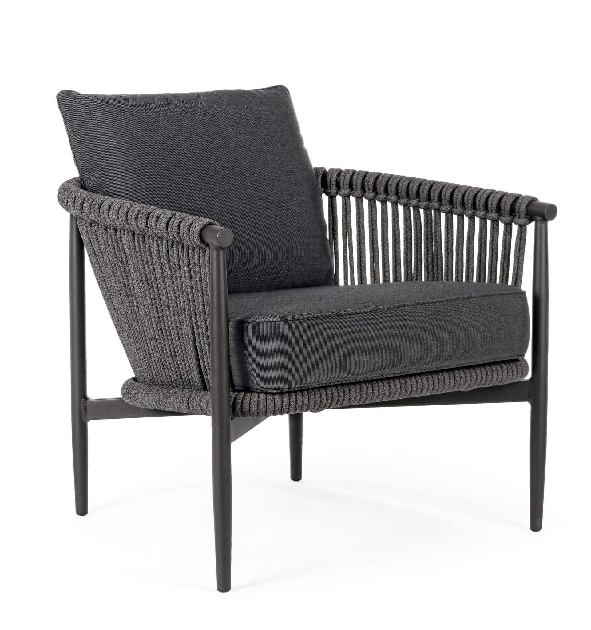 Nowoczesny, ciemny fotel ogrodowy Tiva to idealna propozycja dla miłośników wygodnego wypoczynku na świeżym powietrzu.