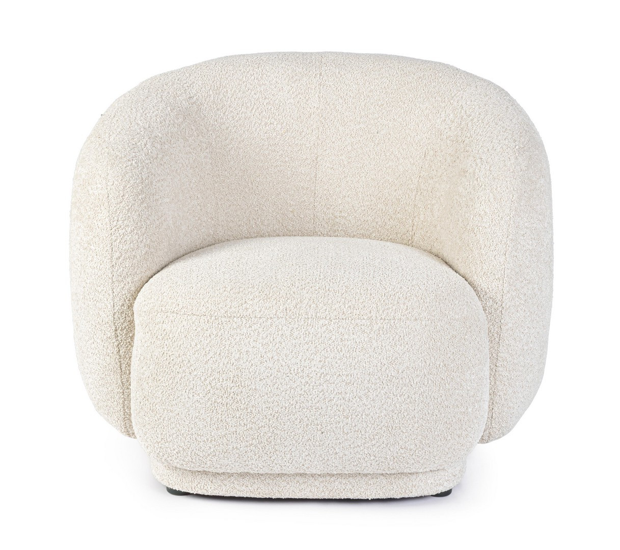 Fotel Tecla to ikona stylu modern-vintage, łącząca minimalistyczną bryłę z luksusową, dotykową tkaniną. Jego opływowy, kubełkowy kształt z zaokrąglonymi krawędziami tworzy przytulną i otulającą przestrzeń. Mebel tapicerowany jest modną tkaniną bouclé w naturalnym, kremowym odcieniu, która dodaje miękkości i wizualnego ciepła. Konstrukcja oparta na solidnej ramie ze sklejki oraz wypełnienie z pianki o optymalnej gęstości (25 kg/m³ na siedzisku) gwarantują wyjątkowy komfort i trwałość formy.