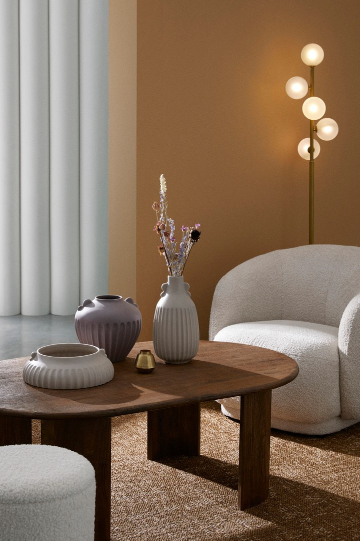 Dzięki swoim znacznym wymiarom (szerokość 93 cm) i niskiej formie, fotel Tecla jest idealny do stworzenia strefy wypoczynkowej w salonie, sypialni czy gabinecie. Jego neutralna barwa i bogata faktura bouclé sprawiają, że doskonale pasuje do wnętrz w stylu mid-century, skandynawskim, czy soft-minimalism. Fotel ten jest wyrazistym, ale subtelnym akcentem, który wnosi do przestrzeni włoską dbałość o estetykę i niezrównany komfort siedzenia, zachęcając do relaksu.