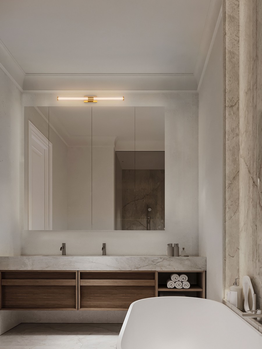 Projekt lampy został ściśle dostosowany do potrzeb wymagających pomieszczeń, co potwierdza klasa szczelności IP44. Dzięki pełnej odporności na wilgoć i przypadkowe zachlapania, kinkiet Telde jest bezpiecznym i trwałym rozwiązaniem do łazienek. Smukła, horyzontalna forma sprawia, że oprawa rewelacyjnie prezentuje się zamontowana nad lustrem, gwarantując równomierne oświetlenie twarzy bez efektu olśnienia.