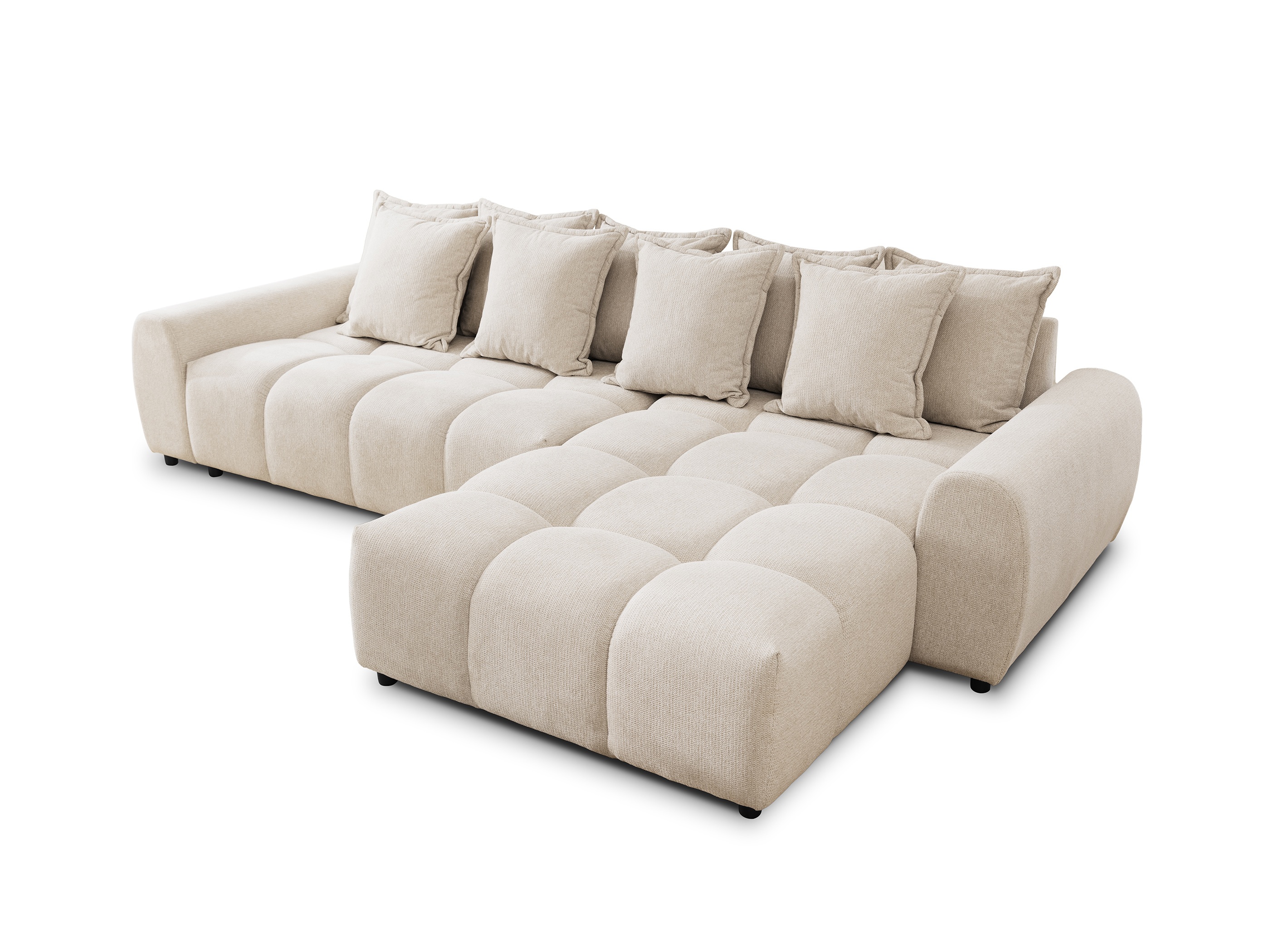 Ten wyjątkowo wygodny model o szerokości 306 cm i głębokości 180 cm stanowi centrum domowego relaksu, oferując przestronne miejsce do siedzenia i leżenia. Jego prosta, modułowa linia doskonale pasuje do wnętrz w stylu skandynawskim, minimalistycznym i nowoczesnym.