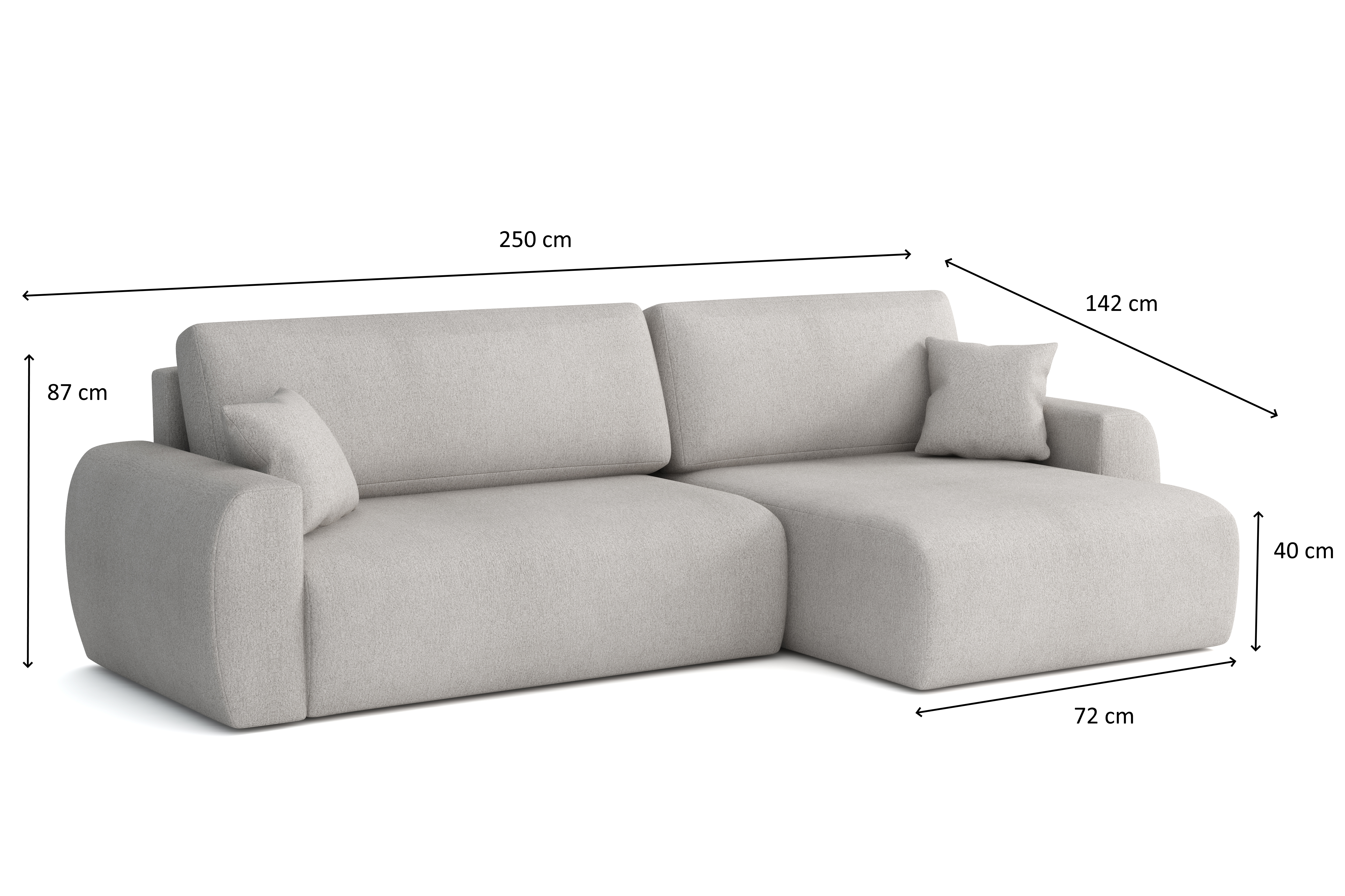 Wysokość całkowita z poduszkami: 87 cm