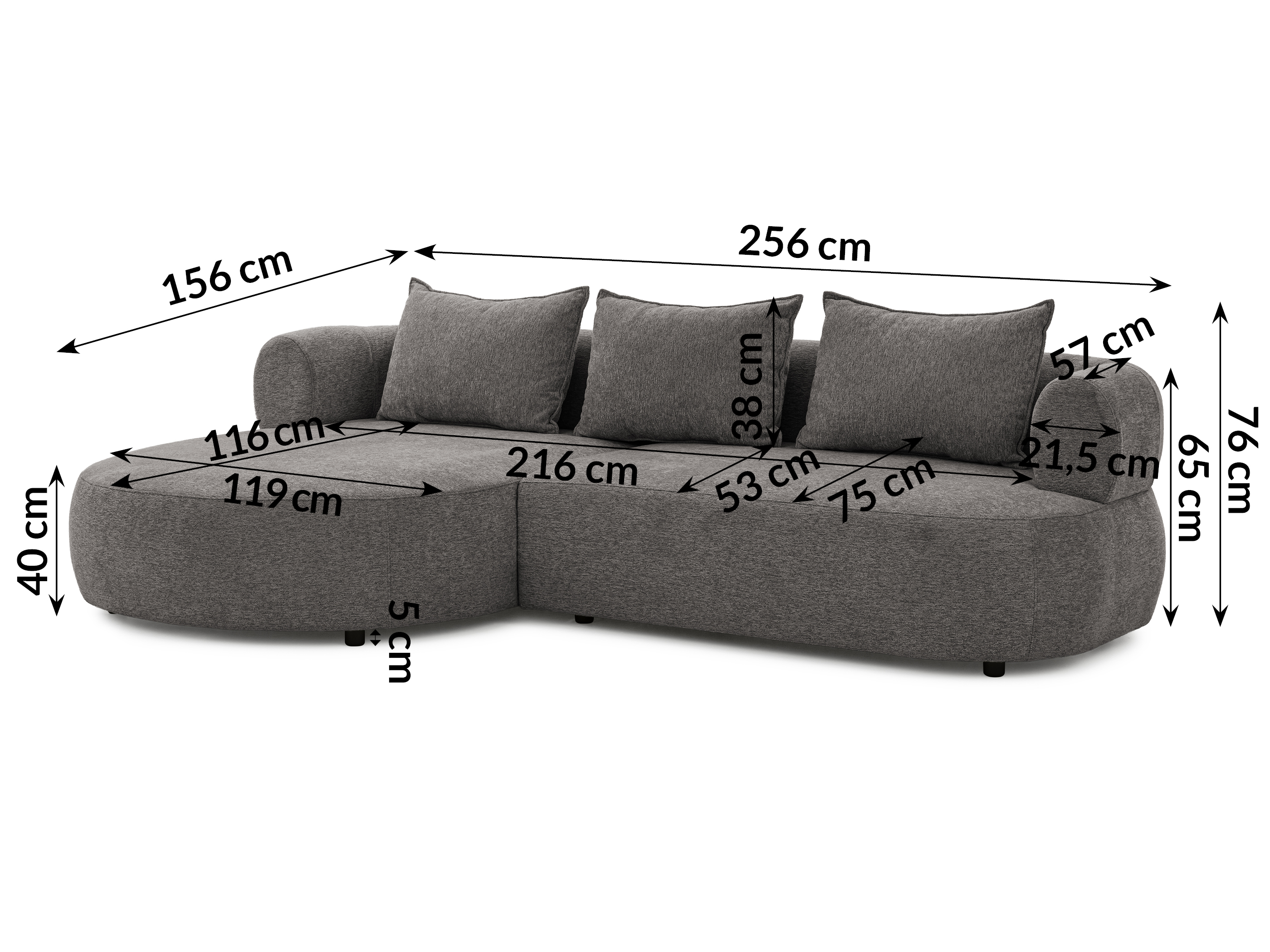 Szerokość siedziska: 216 cm