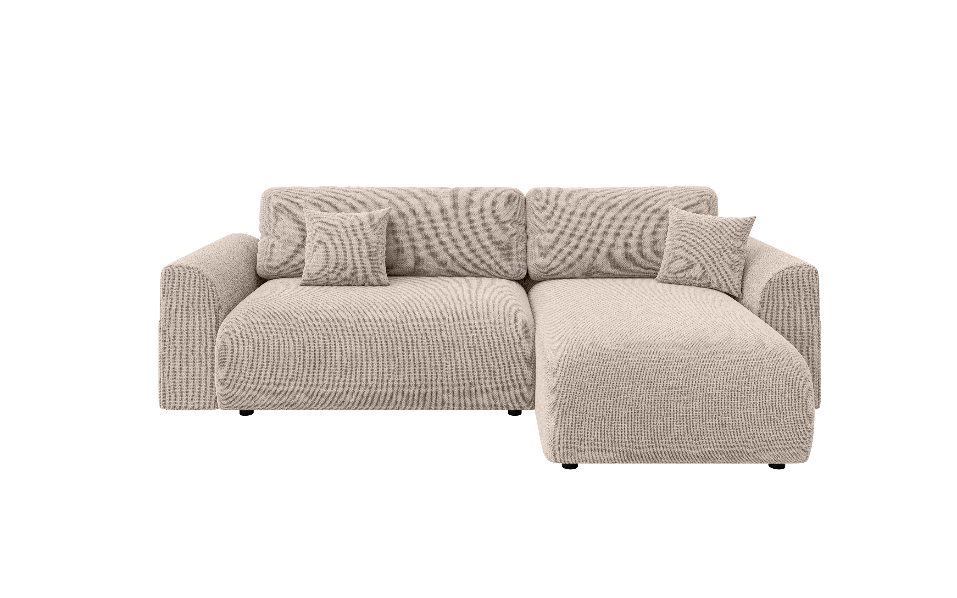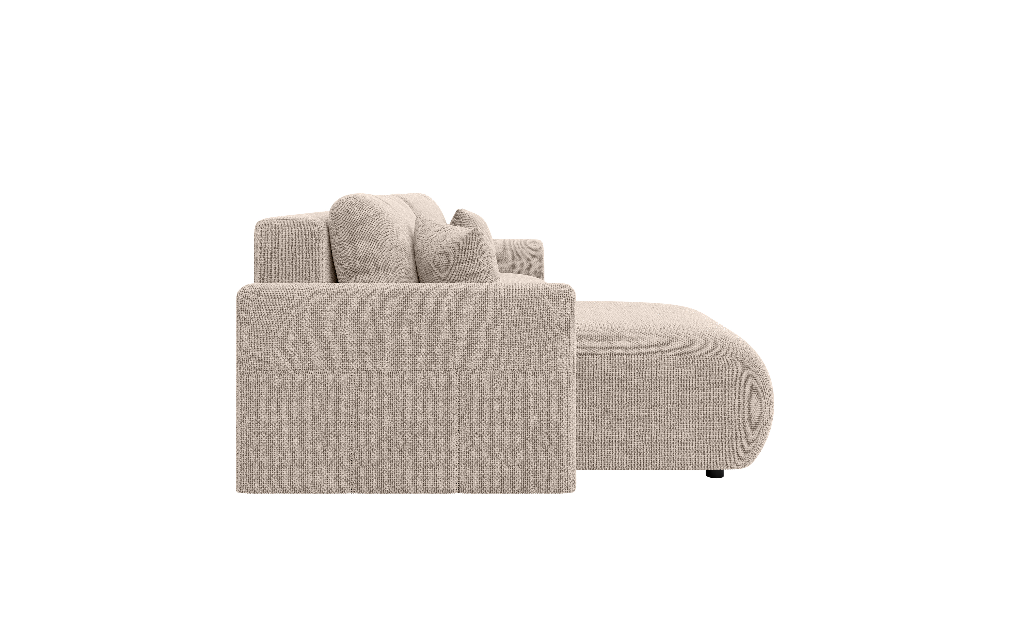 Nowoczesny narożnik Pocket zachwyca miękką, opływową linią i minimalistyczną formą, która świetnie wpisuje się w stylistykę współczesnych wnętrz. Jego nisko osadzona, harmonijna bryła została zaprojektowana tak, aby maksymalnie zwiększyć komfort codziennego wypoczynku – szerokie siedziska, zaokrąglone krawędzie oraz pełne, przyjemne w dotyku poduchy oparciowe tworzą idealne miejsce do relaksu w ciągu dnia i wieczornych seansów filmowych.
