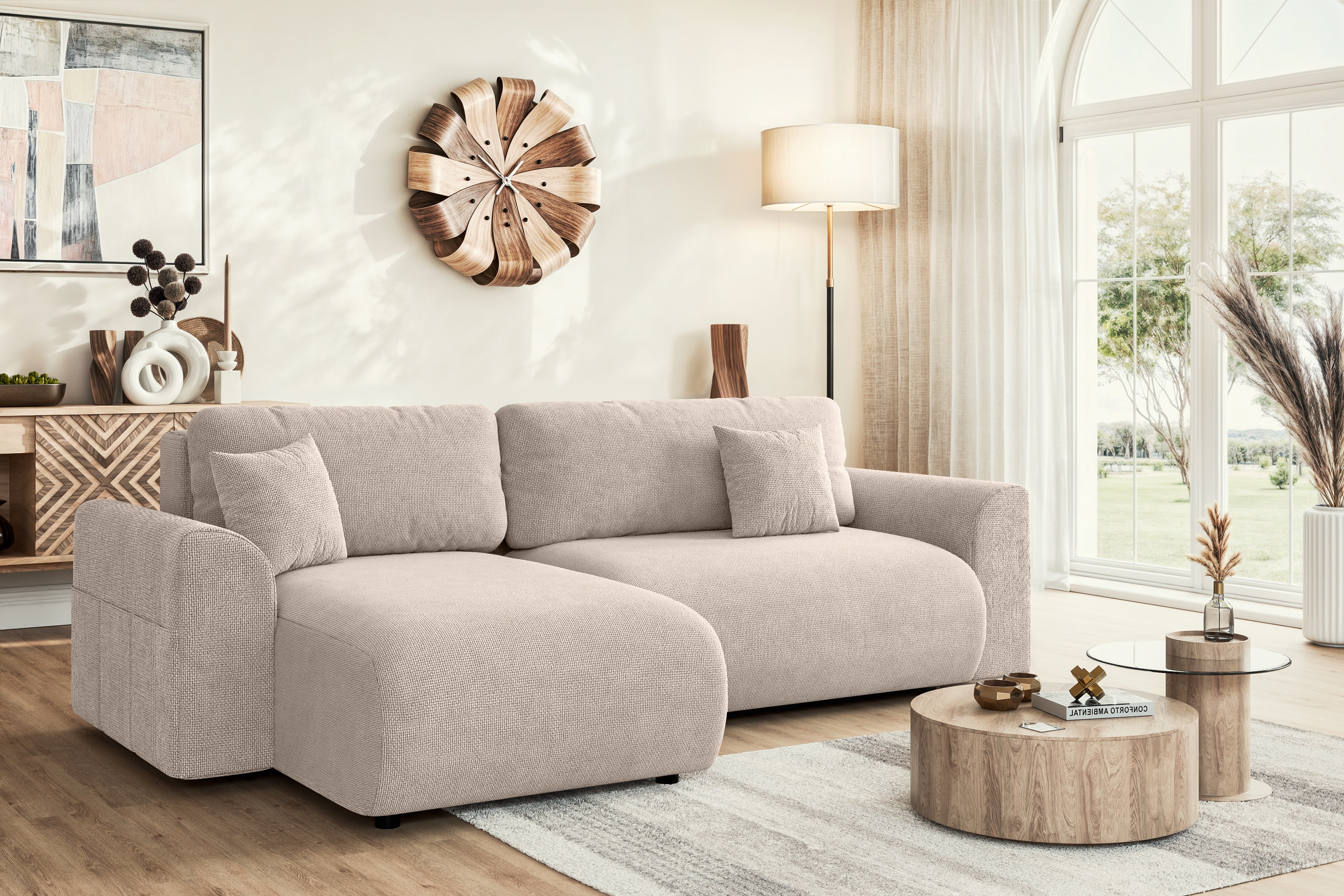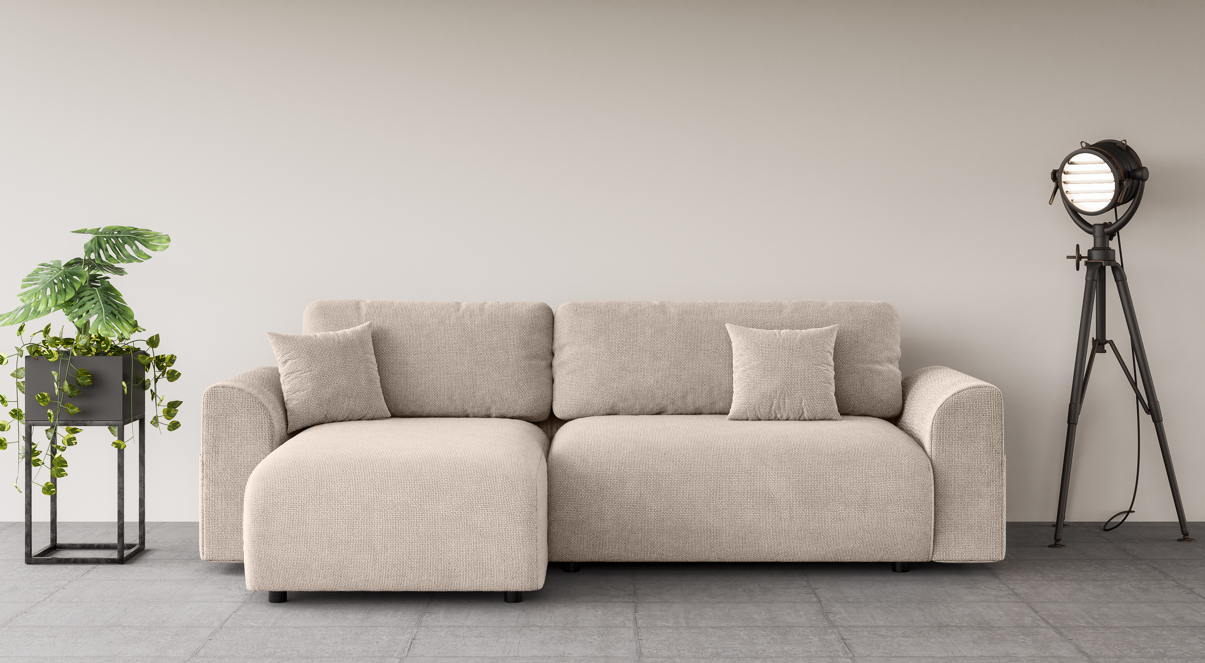 Nowoczesny narożnik z funckją spania i kieszonką do przechowywania Pocket beżowy