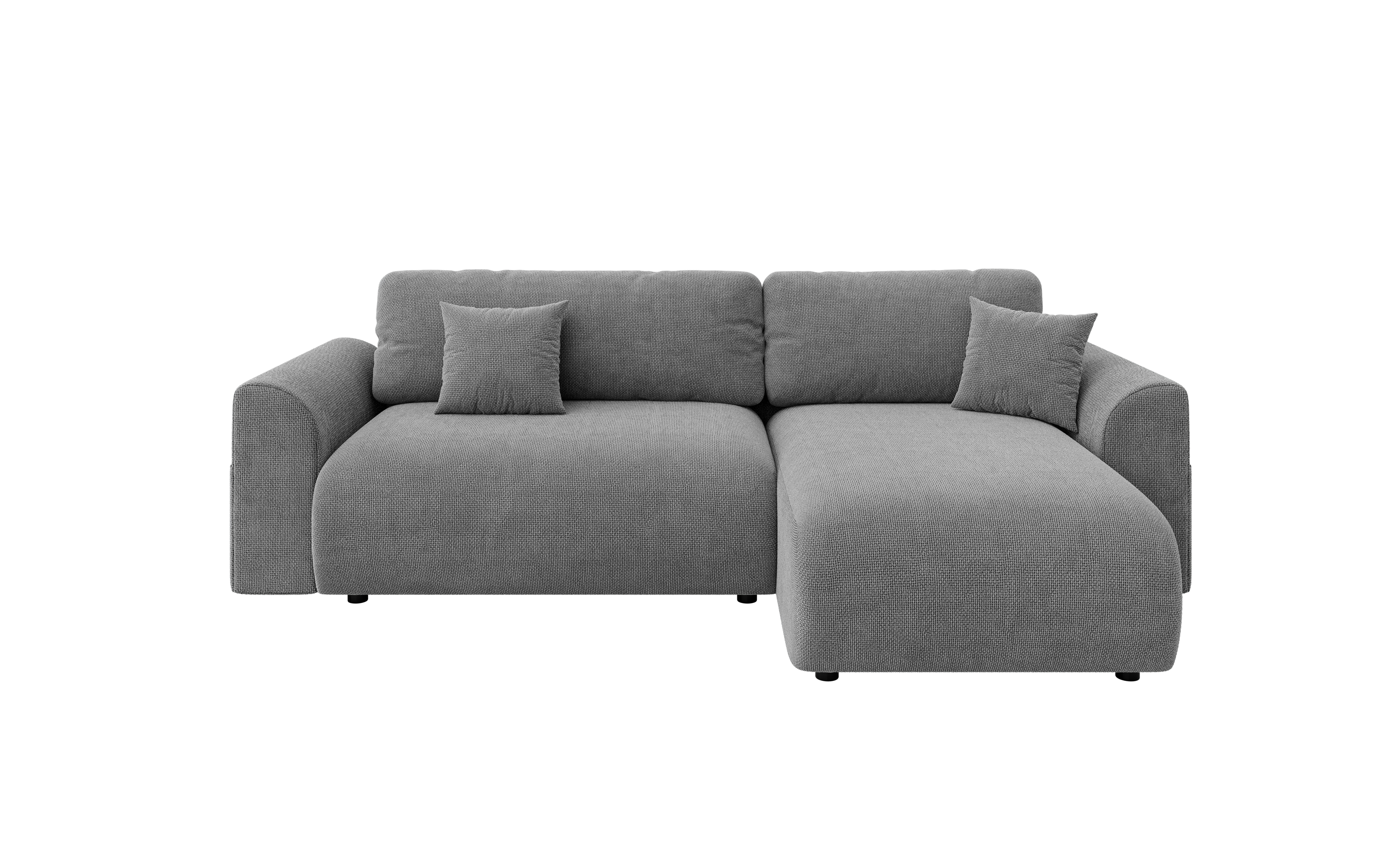 Nowoczesny narożnik Pocket zachwyca miękką, opływową linią i minimalistyczną formą, która świetnie wpisuje się w stylistykę współczesnych wnętrz. Jego nisko osadzona, harmonijna bryła została zaprojektowana tak, aby maksymalnie zwiększyć komfort codziennego wypoczynku – szerokie siedziska, zaokrąglone krawędzie oraz pełne, przyjemne w dotyku poduchy oparciowe tworzą idealne miejsce do relaksu w ciągu dnia i wieczornych seansów filmowych.