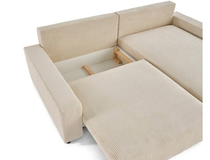 Nowoczesny narożnik z funkcją spania Mary z dwoma pojemnikami beżowy