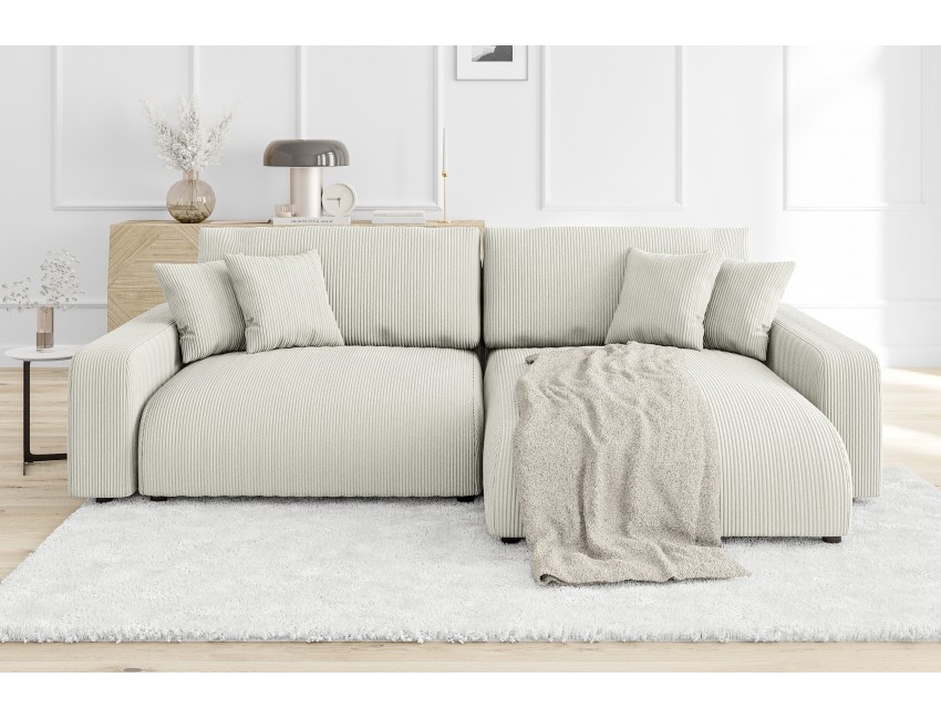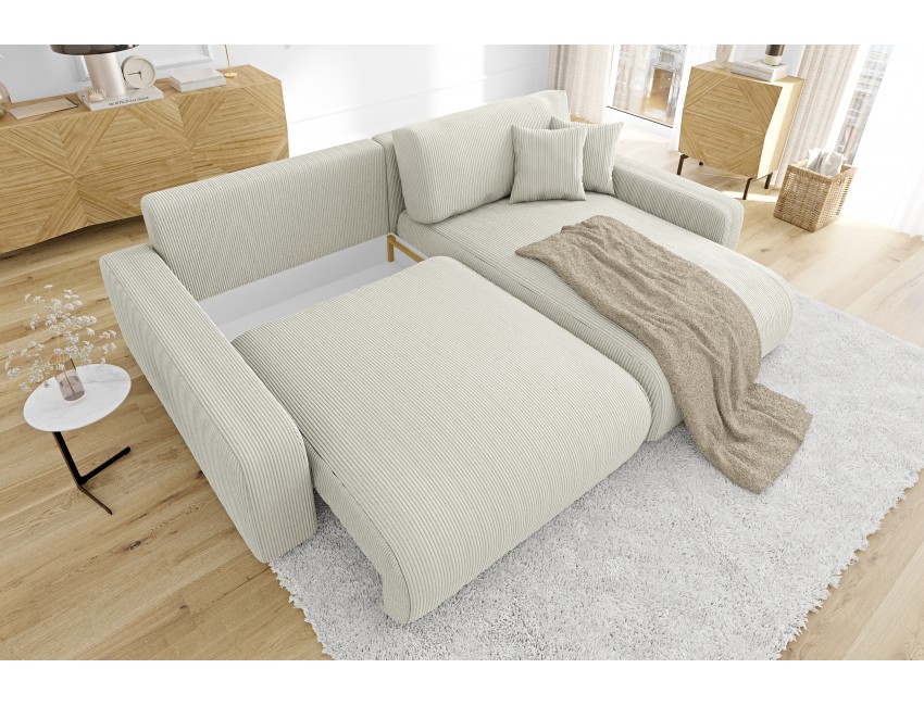 Nowoczesny narożnik z funkcją spania Mary z jednym pojemnikiem kremowy