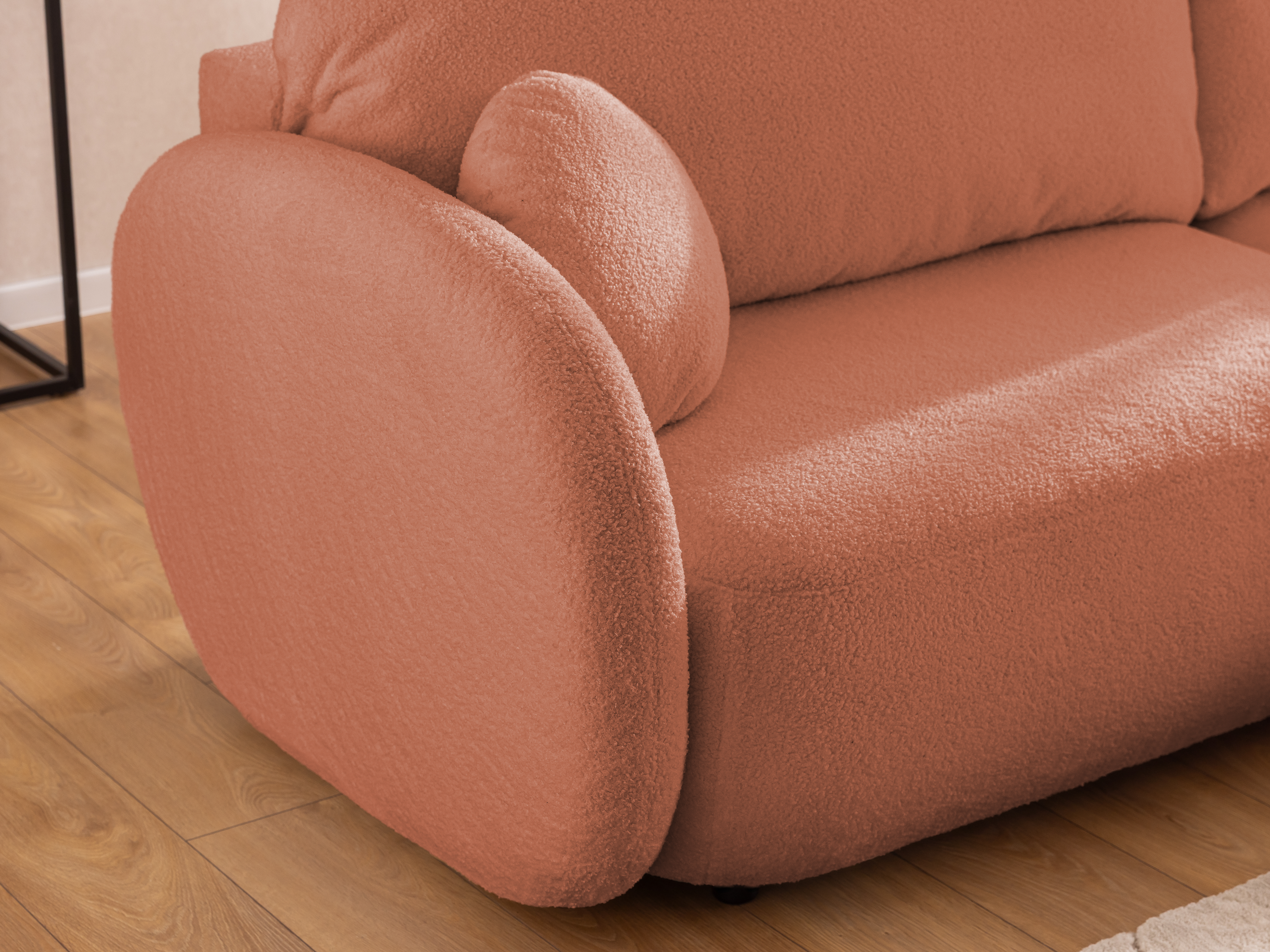 Jego miękkie, obłe kształty i minimalistyczna estetyka tworzą efekt "chmury", pasując idealnie do wnętrz w stylu cozy, skandynawskim i nowoczesnym. Zaokrąglenia mebla łagodzą przestrzeń, wprowadzając do niej spokój i harmonię.