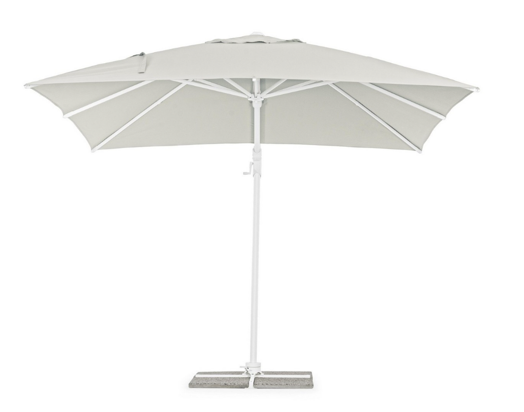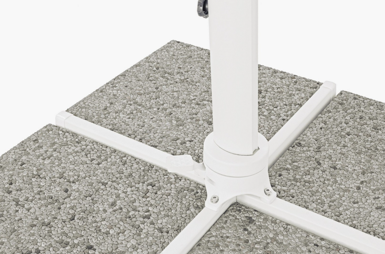 Zestaw zawiera: Parasol, bazę, obciążniki betonowe oraz pokrowiec