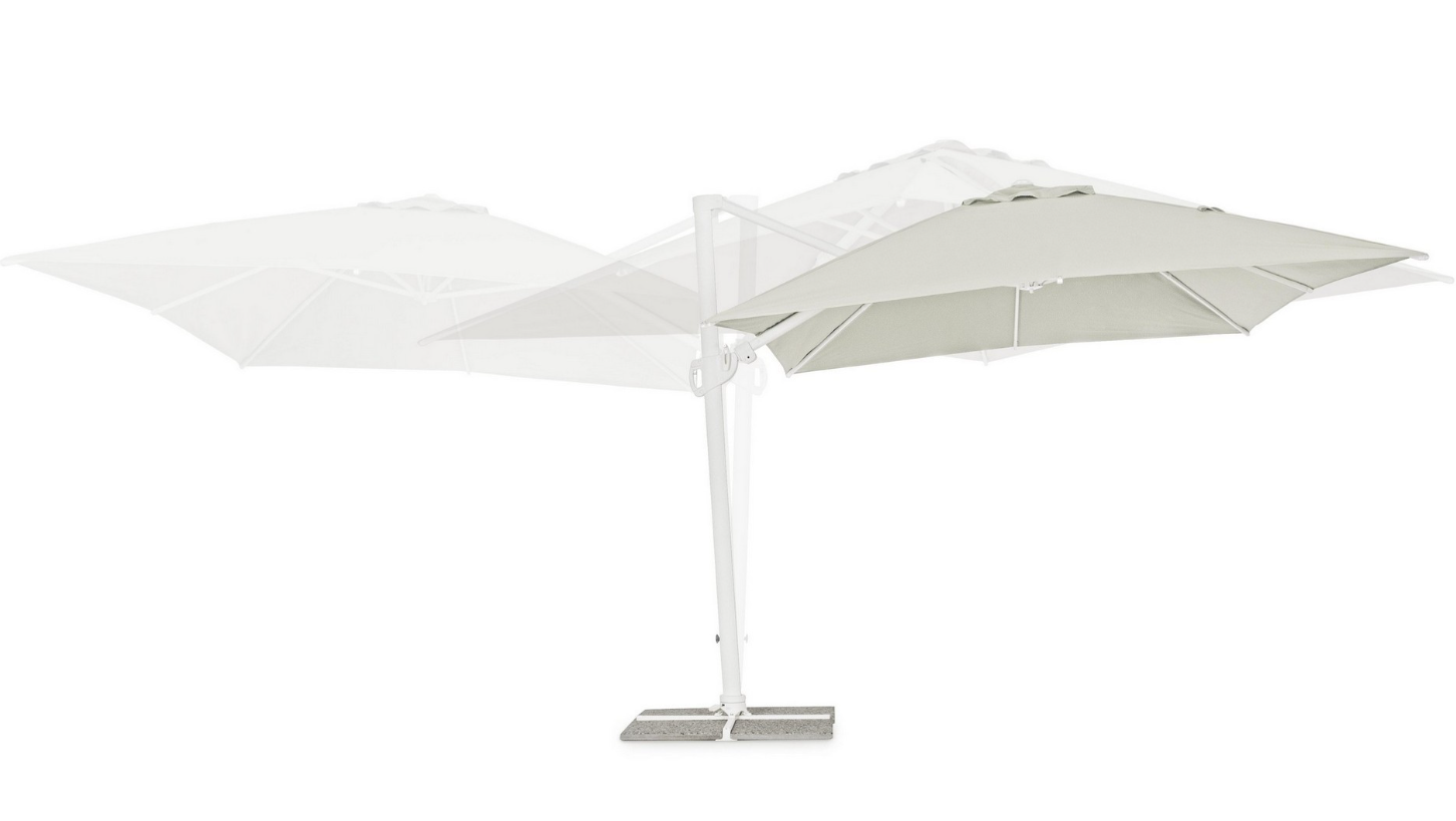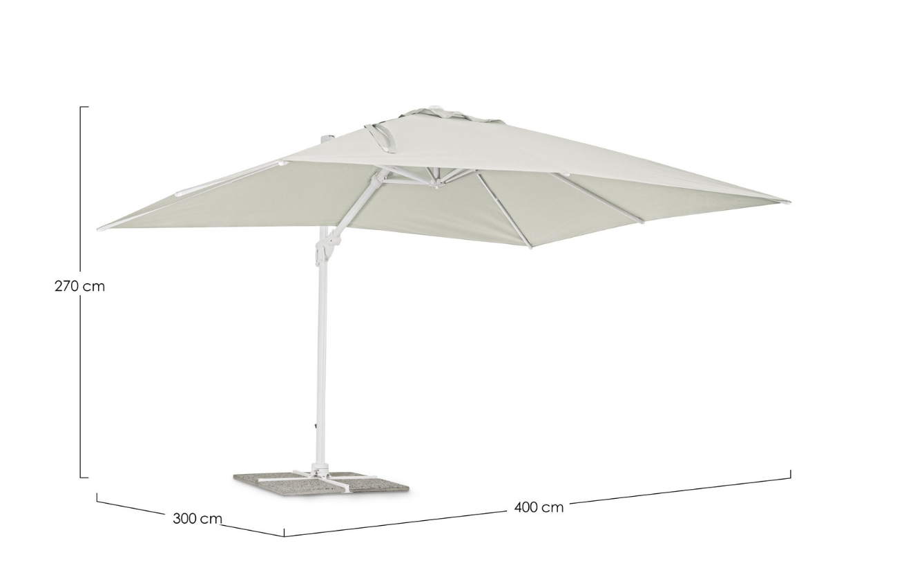 Produkt oferujemy jako kompletny zestaw gotowy do użytku. W cenie zawarta jest stalowa baza, niezbędne betonowe obciążniki dla stabilności konstrukcji oraz dedykowany pokrowiec ochronny. Parasol jest również przygotowany do montażu opcjonalnego oświetlenia LED i głośnika.