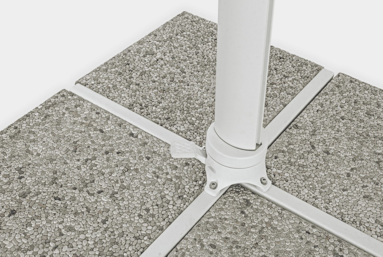 Zestaw zawiera: Parasol, bazę, obciążniki betonowe oraz pokrowiec