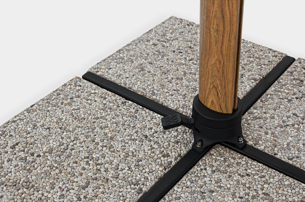 Zestaw zawiera: Parasol, bazę, obciążniki betonowe oraz pokrowiec