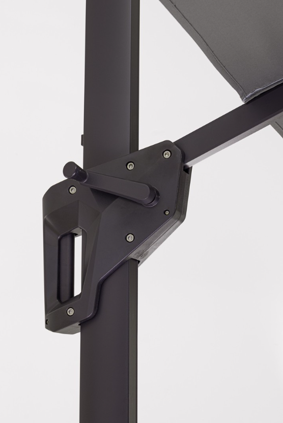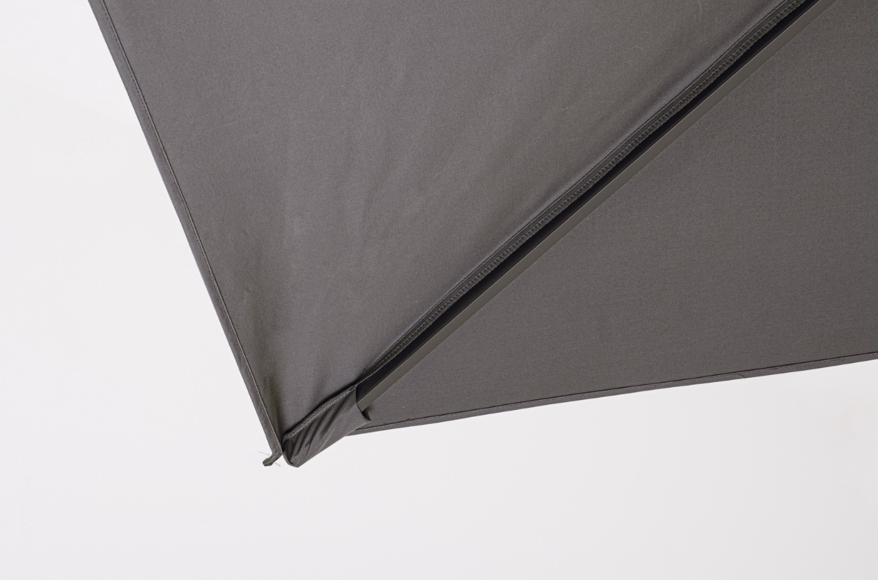 Parasol boczny Porto w wersji ciemnoszarej to idealny wybór dla miłośników nowoczesnego minimalizmu. Model ten wyróżnia się spójną, ciemną kolorystyką: aluminiowa konstrukcja w odcieniu głębokiego antracytu doskonale koresponduje z czaszą w kolorze ciemnoszarym. Taki design sprawia, że parasol staje się eleganckim i dyskretnym dopełnieniem tarasu, nie dominując nad otoczeniem, lecz podkreślając jego styl.