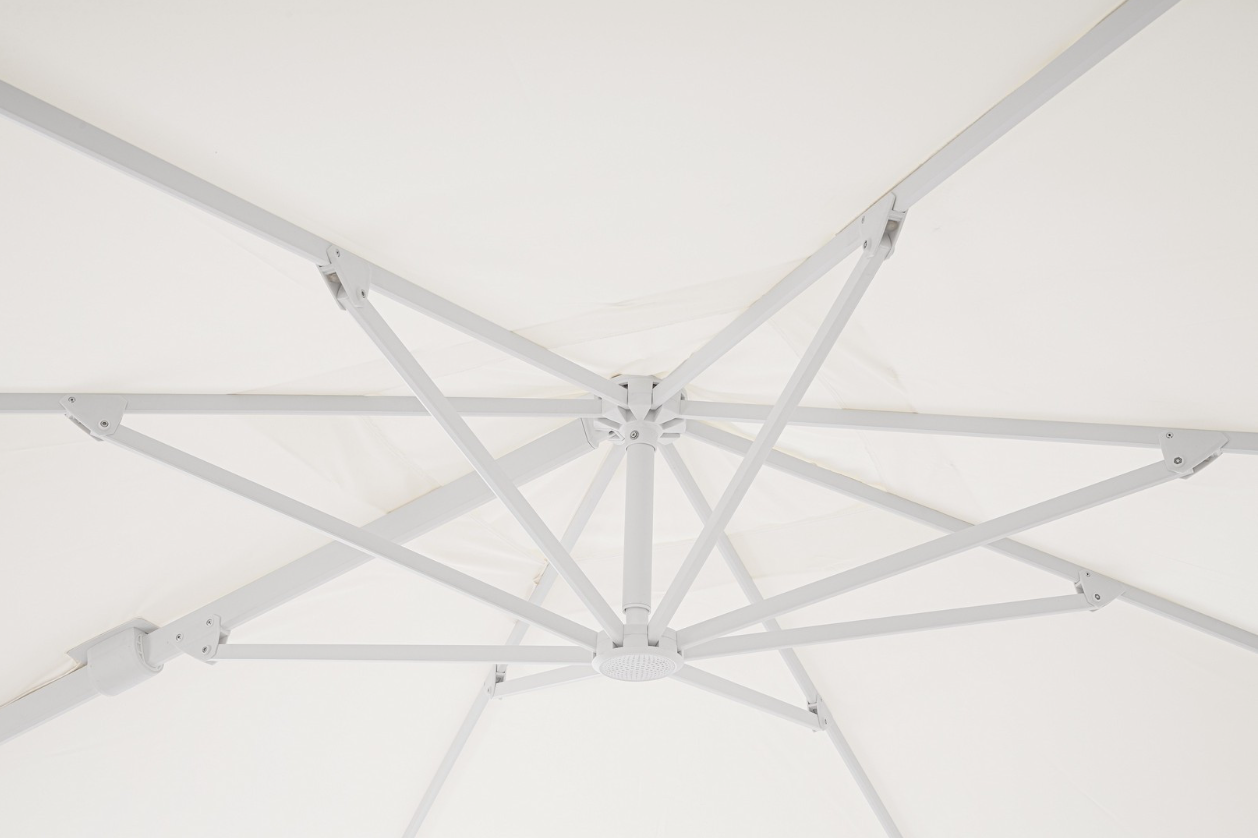 Parasol Vega 3x3 m – Monochromatyczna biel w geometrycznej formie
