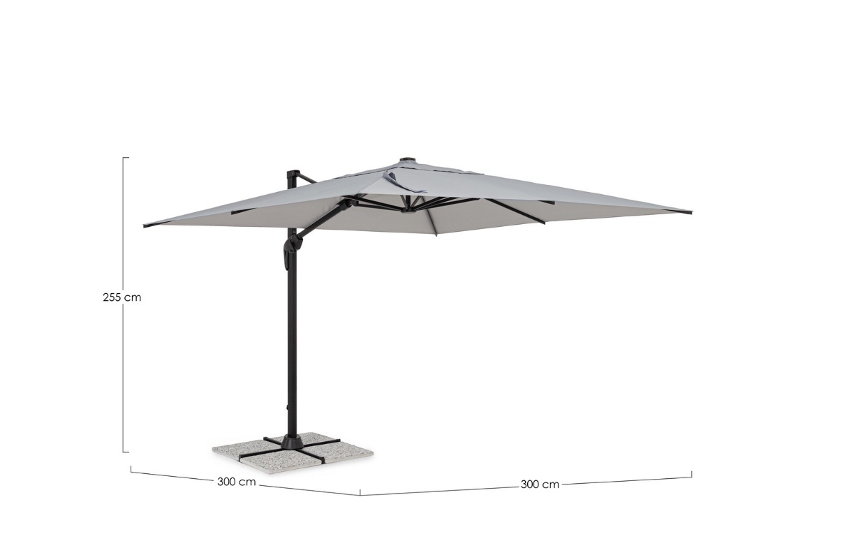 Parasol służy do ochrony przed słońcem. Aby uniknąć uszkodzeń mechanicznych, należy bezwzględnie składać czaszę podczas wiatru oraz opadów deszczu. Nieużywany parasol powinien pozostawać w pozycji zamkniętej i być zabezpieczony dołączonym pokrowcem, co chroni tkaninę przed zabrudzeniami i blaknięciem.