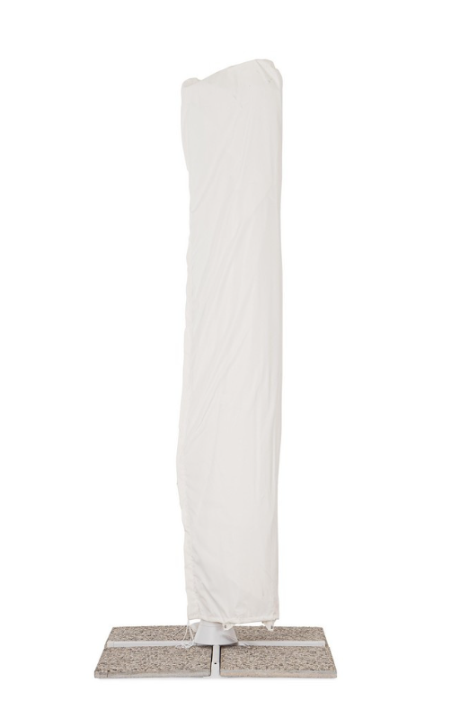 Parasol służy do ochrony przed słońcem. Aby uniknąć uszkodzeń mechanicznych, należy bezwzględnie składać czaszę podczas wiatru oraz opadów deszczu. Nieużywany parasol powinien pozostawać w pozycji zamkniętej i być zabezpieczony dołączonym pokrowcem, co jest kluczowe dla zachowania nieskazitelnej bieli materiału.