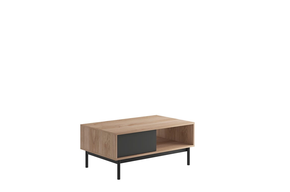 To pełna uniwersalnego wdzięku propozycja o niezwykle szerokich możliwościach aranżacyjnych. Sprawdzi się jako doskonały i praktyczny dodatek do wnętrza. Ten stolik kawowy może być również zagospodarowany jako ława. Wykonanay jest z wysokiej jakości płyty laminowanej, która charakteryzuje się odpornością na zarysowania, wilgoć i wysoką temperaturę. Obrzeża wykończono odporniejszą na codzienne użytkowanie okleiną ABS. Półka pozwala na dodatkowe zaaranżowanie przestrzeni, przechowywanie gazet lub podręcznych przedmiotów niezbędnych do obsługi telewizora.