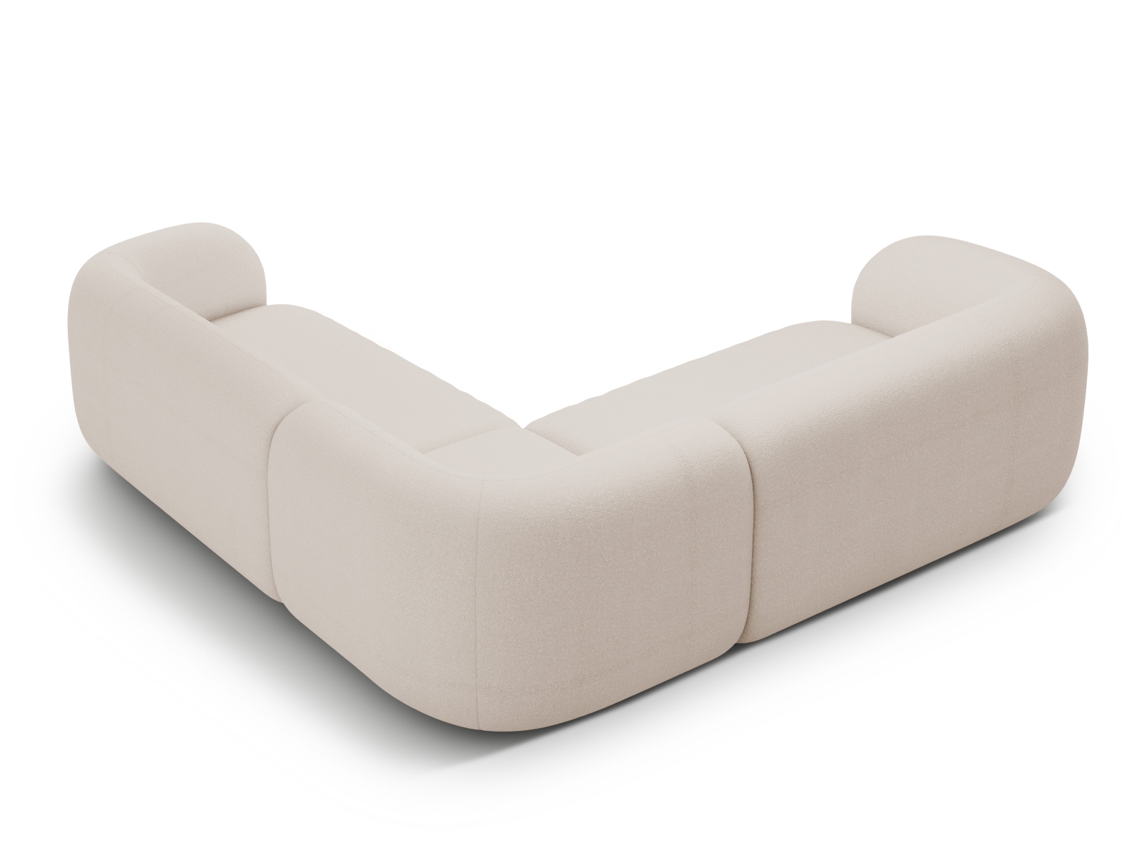 Symetryczny narożnik Kate w tkaninie Bouclé to mebel, który redefiniuje pojęcie domowego komfortu. Imponujące wymiary 252x252 cm czynią go idealnym centrum dużego salonu, oferując równomierną przestrzeń wypoczynku dla całej rodziny. Organiczna forma mebla, pozbawiona ostrych kątów, w połączeniu z pętelkową strukturą tkaniny "teddy", tworzy efekt miękkiej, bezpiecznej wyspy, która wizualnie ociepla wnętrze w stylu soft minimalism.