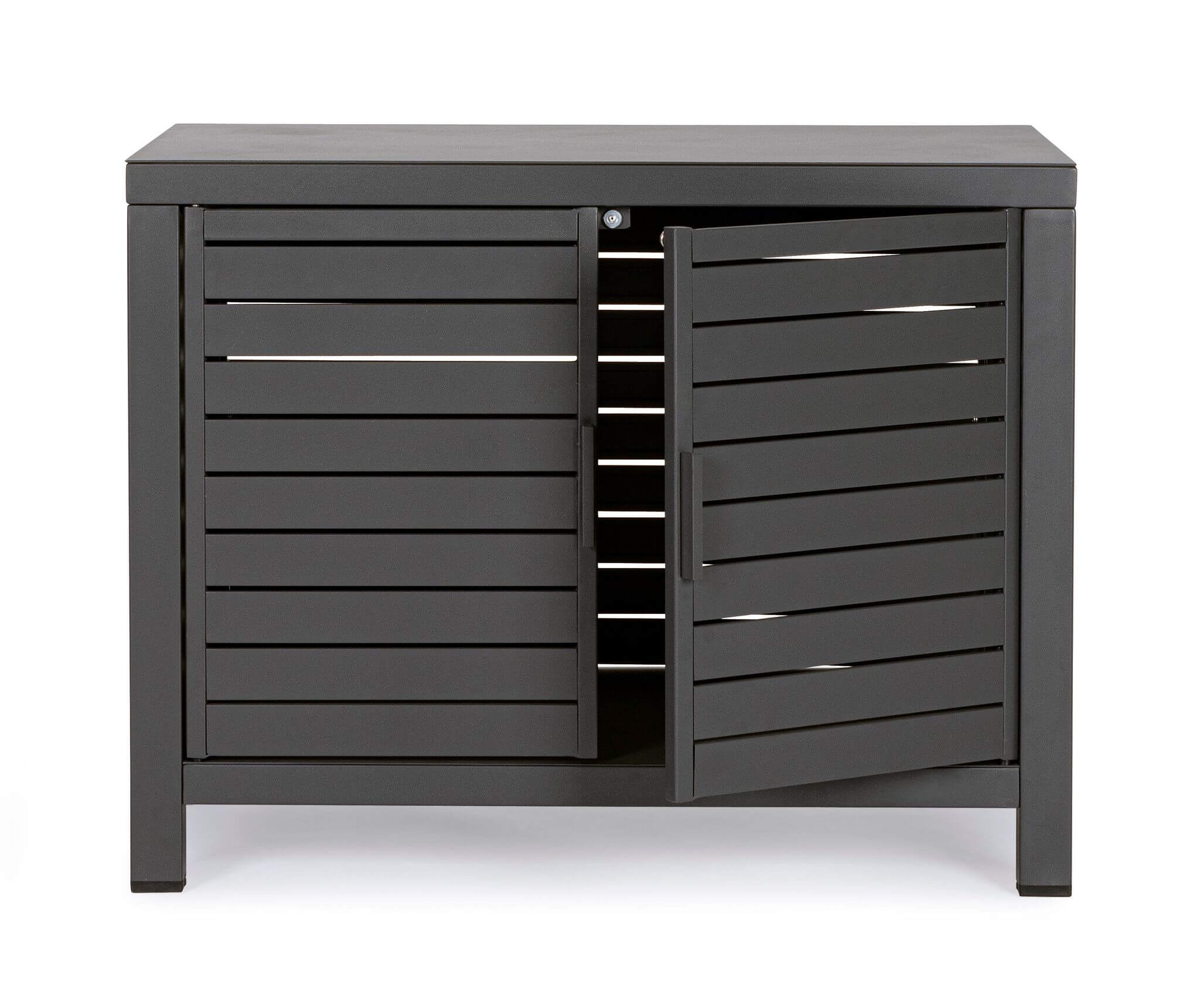 Ogrodowa, czarna komoda 2-drzwiowa pozwoli zachować porządek, a także stanie się stylowym dopełnieniem aranżacji przestrzeni outdoorowej. Zaprojektowana przez włoską markę Bizzotto.