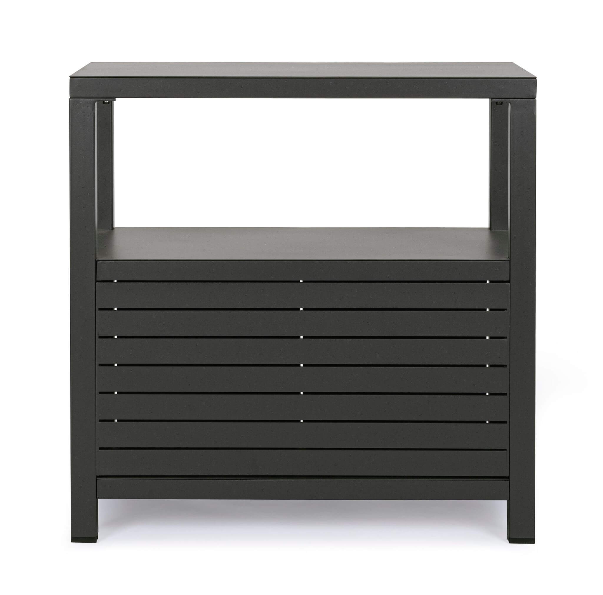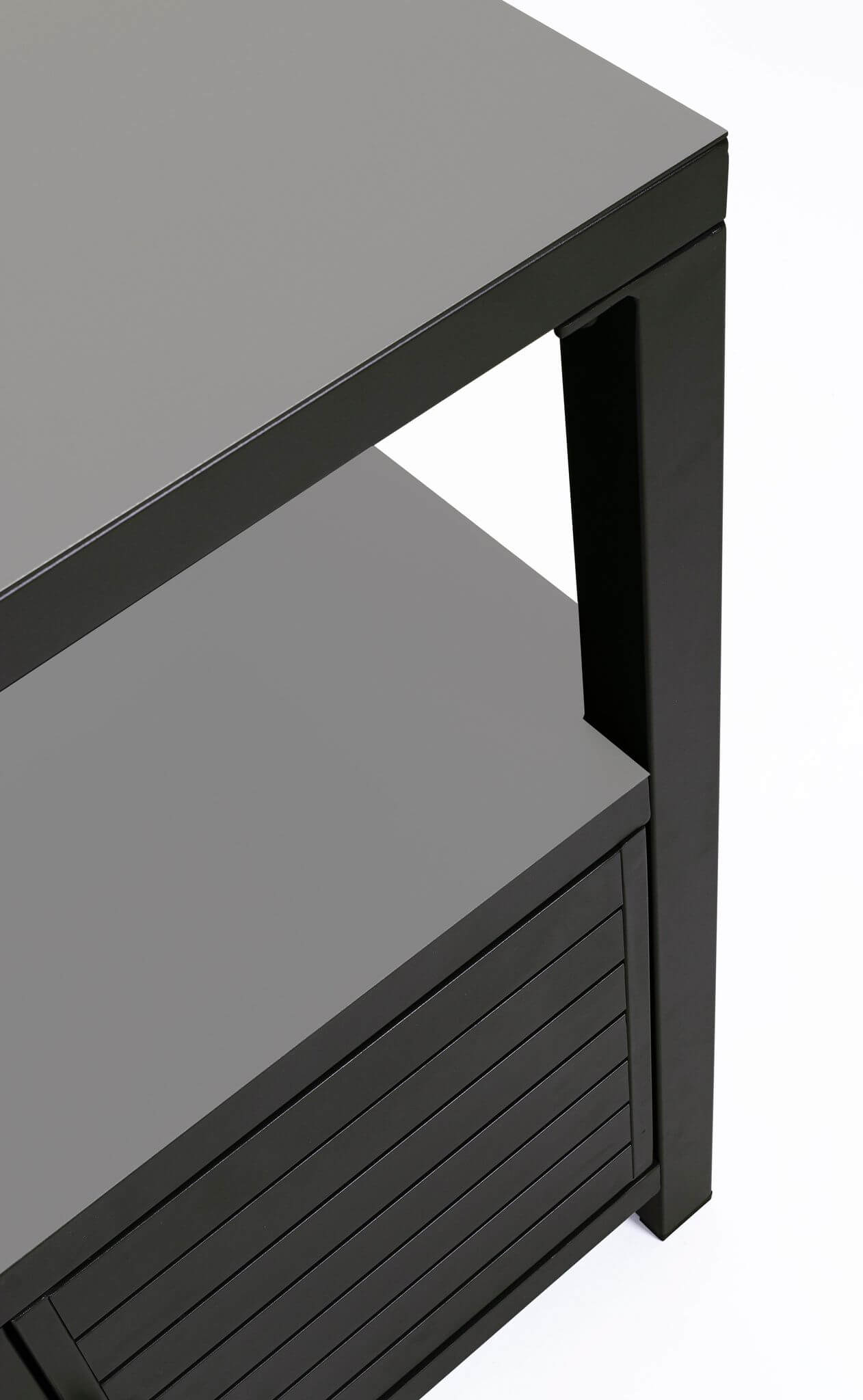 Czarna komoda wykonana jest z odpornego na warunki atmosferyczne aluminium malowanego proszkowo poliestrem - dlatego świetnie sprawdzi się do ogrodu, na taras czy balkon.