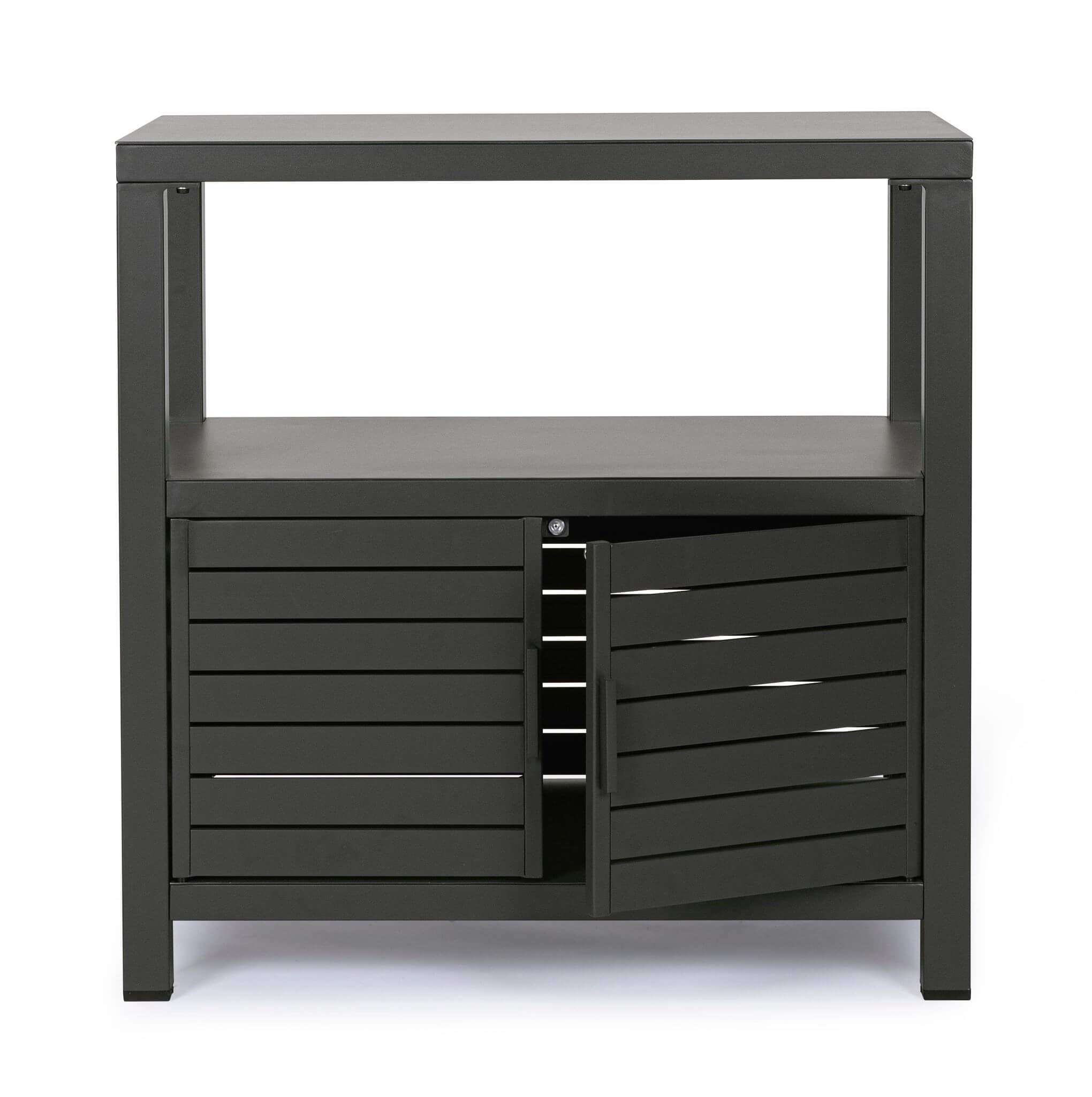 Ogrodowa, czarna komoda 2-drzwiowa pozwoli zachować porządek, a także stanie się stylowym dopełnieniem aranżacji przestrzeni outdoorowej. Zaprojektowana przez włoską markę Bizzotto.
