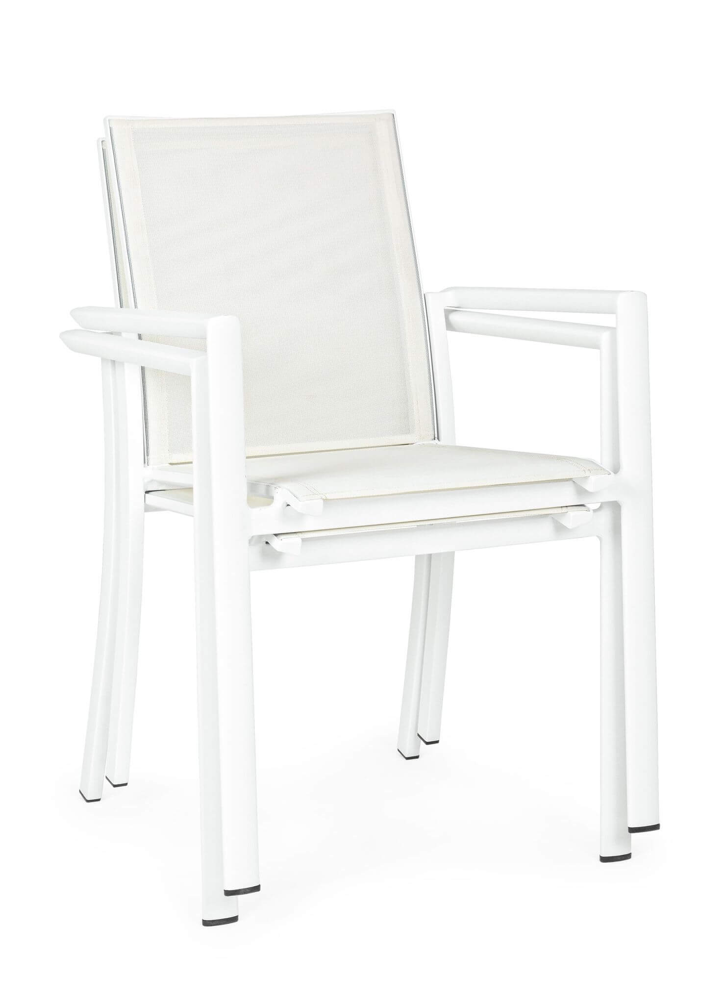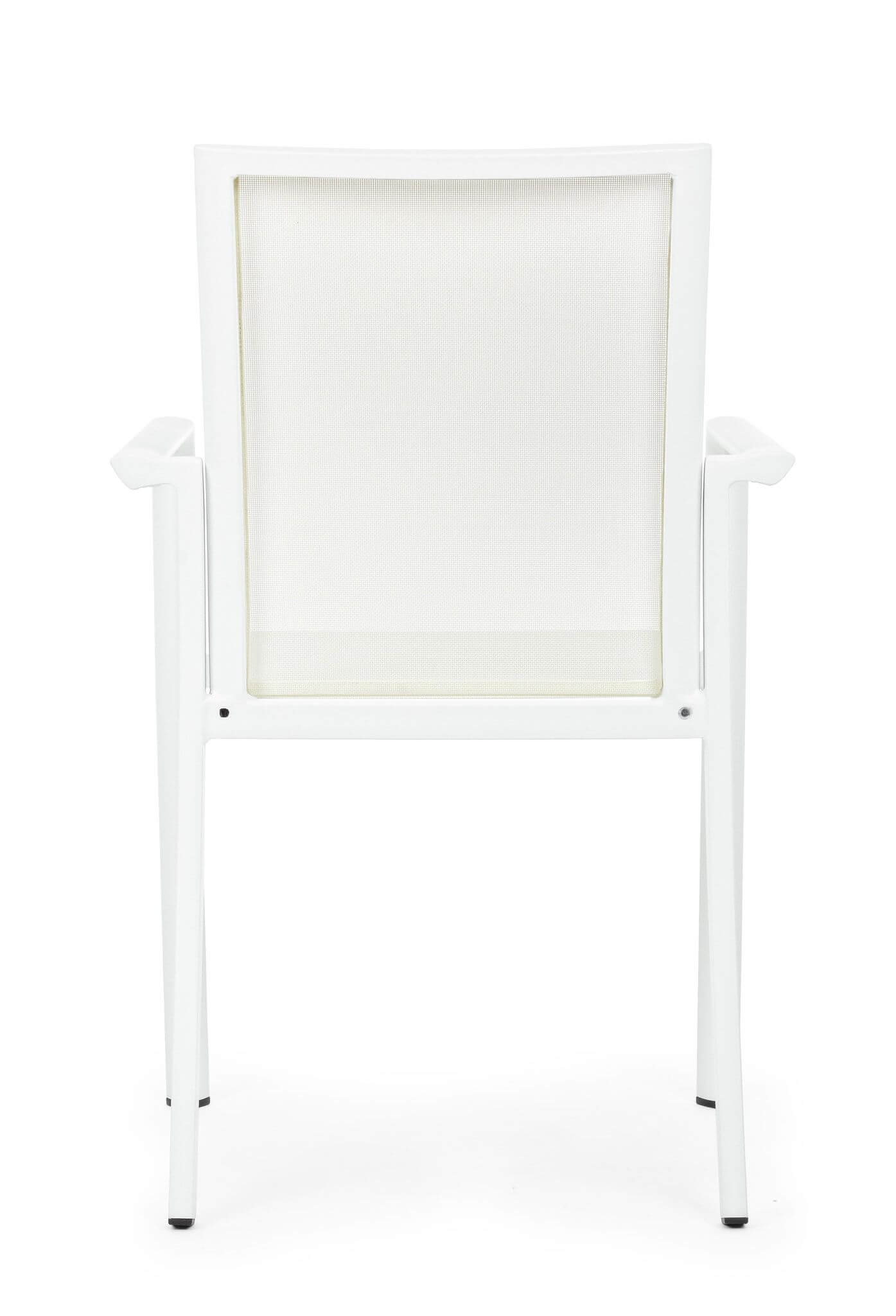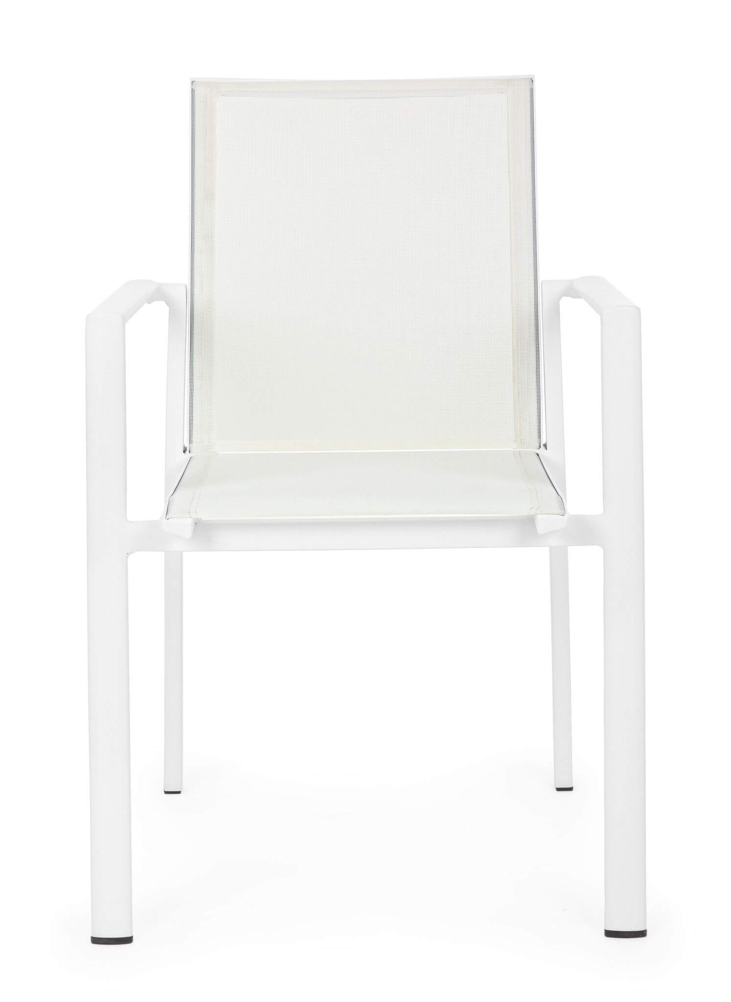 Minimalistyczne białe krzesło ogrodowe Konnor to idealne rozwiązanie dla osób, które cenią sobie komfort i stylowy design w swoim ogrodzie.