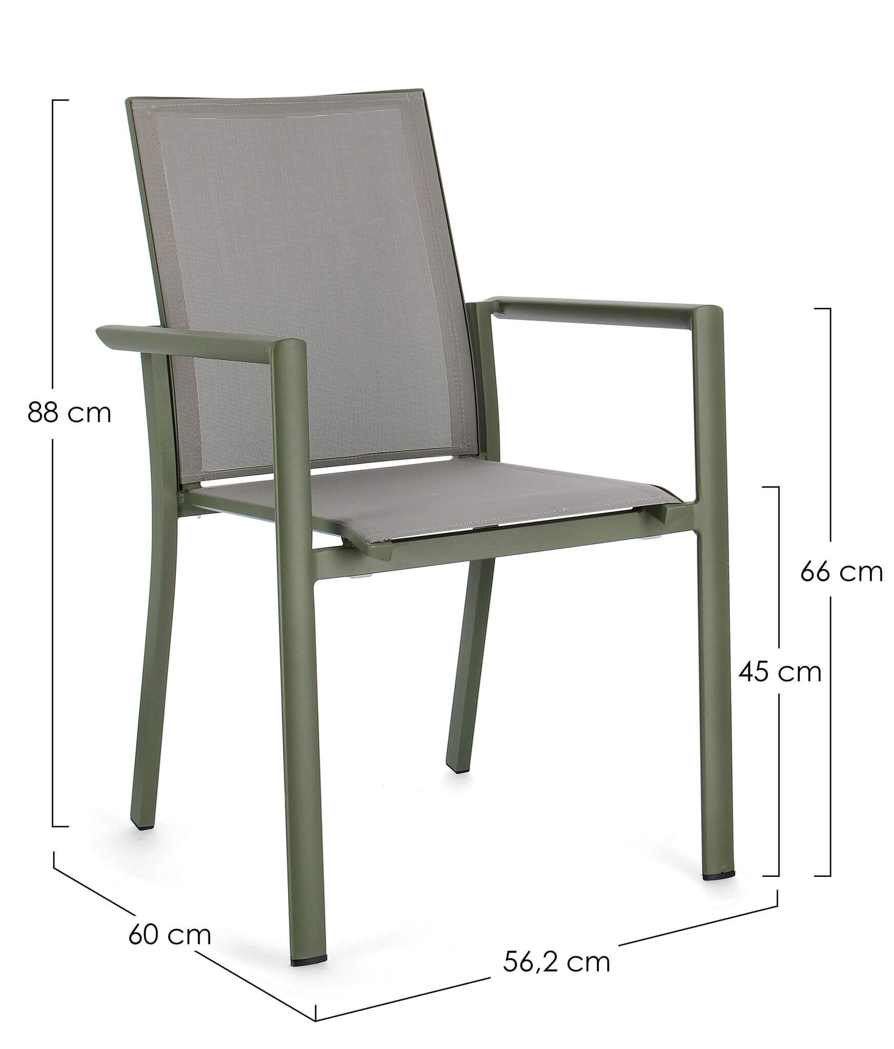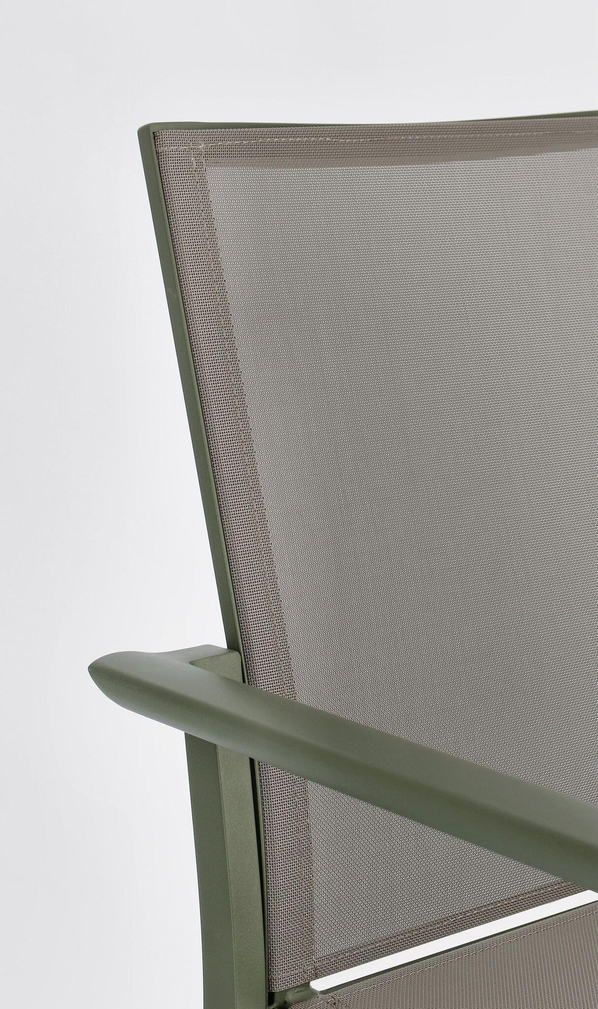 Wykonane z aluminium pokrytego proszkową powłoką i siedziska oraz oparcia z tkaniny tekstylnej 1x1. Zapewnia wytrzymałość i odporność na warunki atmosferyczne.