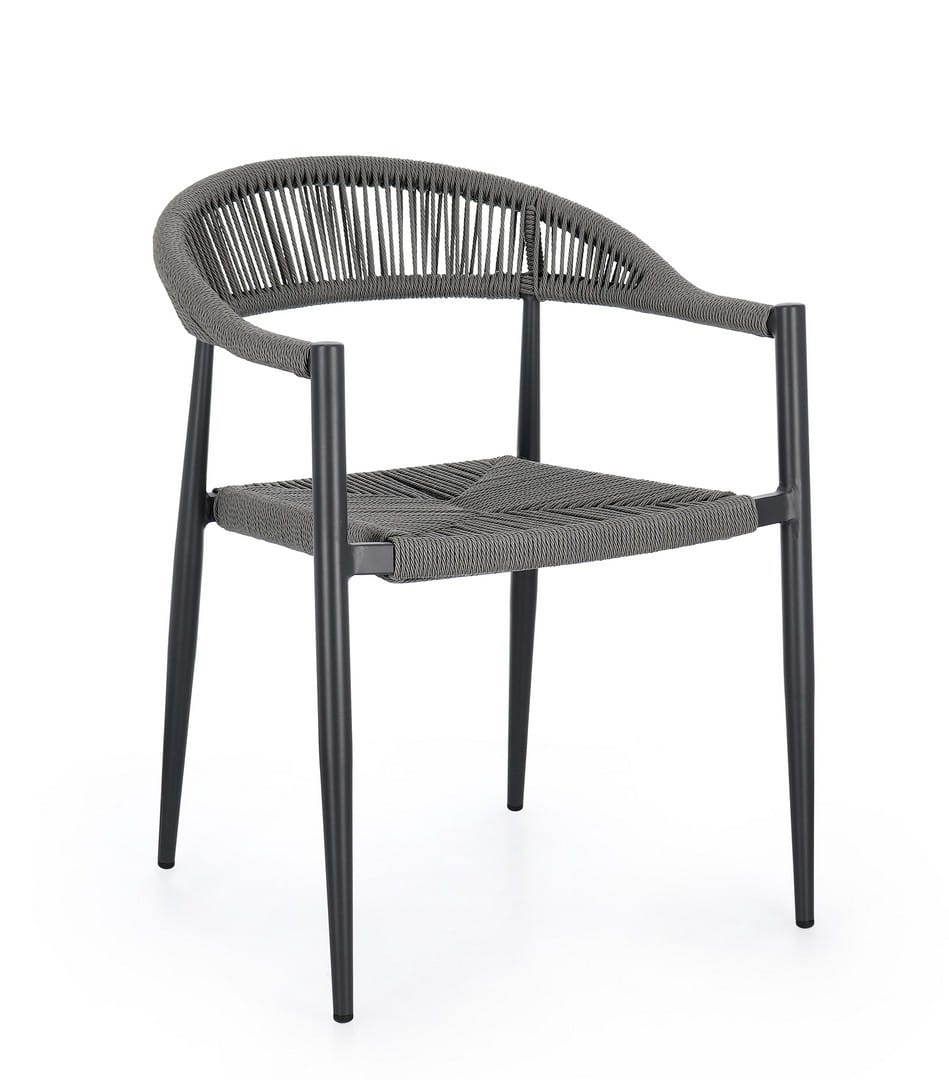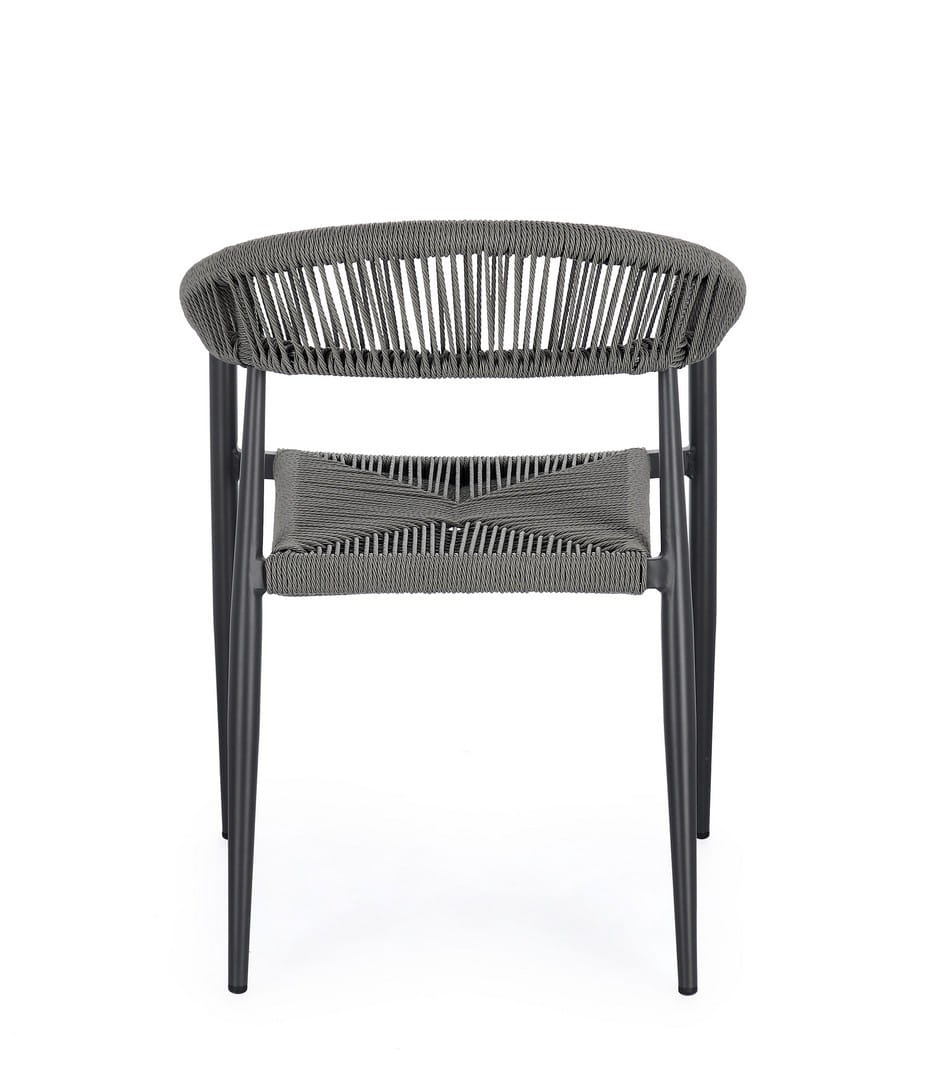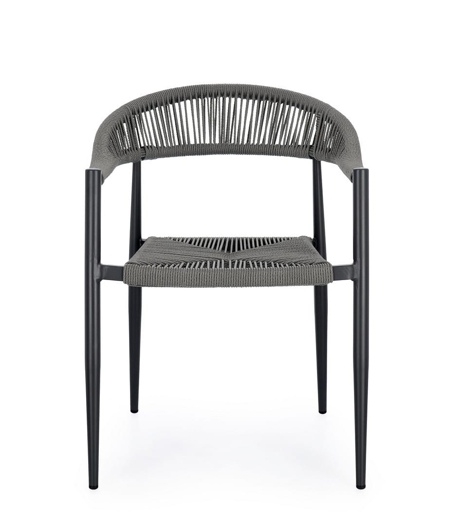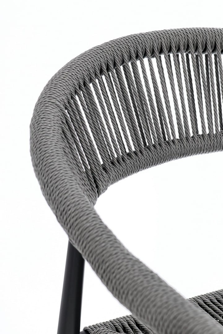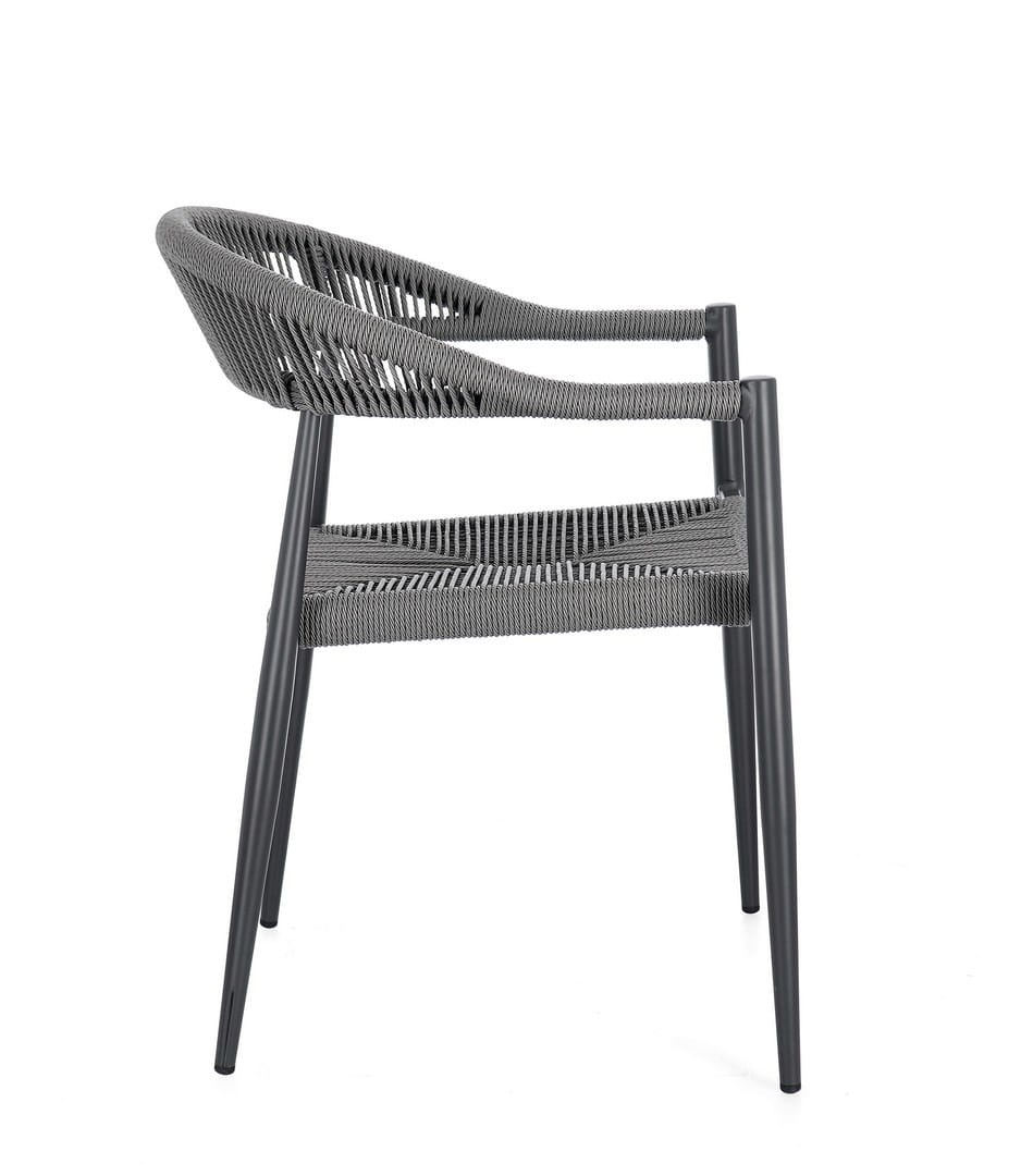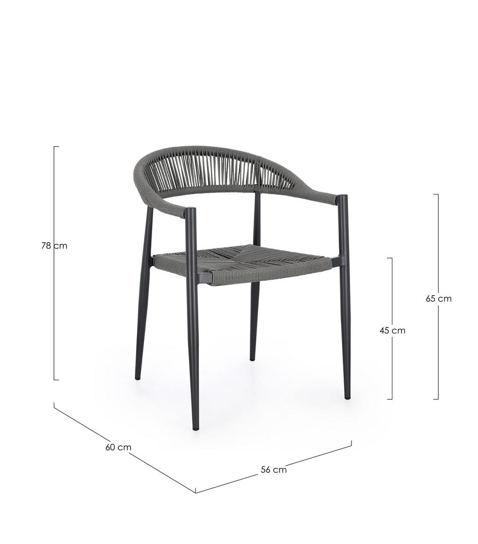 Krzesło ogrodowe Jandia to połączenie stylu boho z nowoczesnym designem. Lekką, a jednocześnie solidną konstrukcję wykonano z malowanego proszkowo aluminium w antracytowym kolorze, które zapewnia odporność na warunki atmosferyczne. Oparcie oraz siedzisko oplata syntetyczne włókno typu „twisted”, wiernie imitujące naturalne materiały i nadające całości wyjątkowego charakteru.