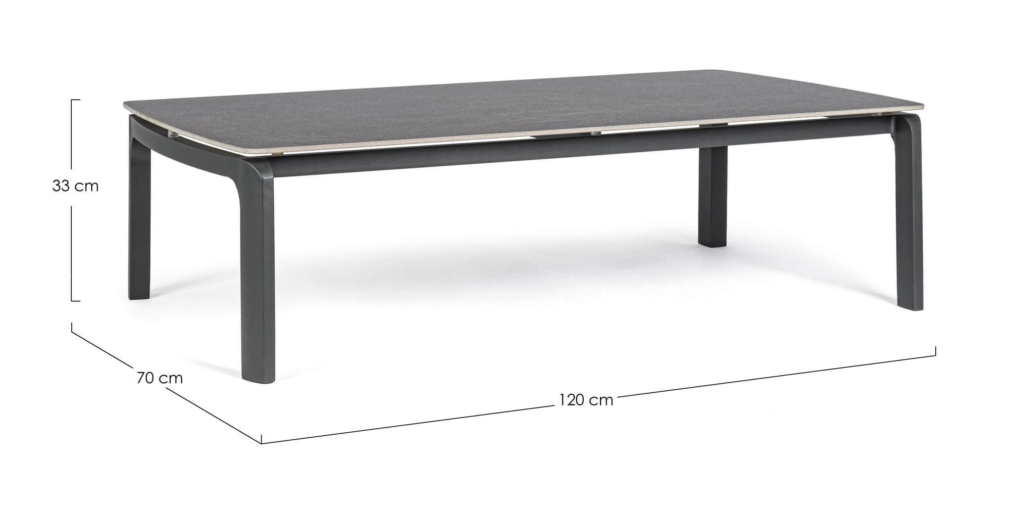 Antracytowy stolik kawowy do ogrodu, na taras lub większy balkon to idealny mebel dla tych, którzy cenią sobie prostotę i funkcjonalność. Projektu włoskiej marki Bizzotto.
