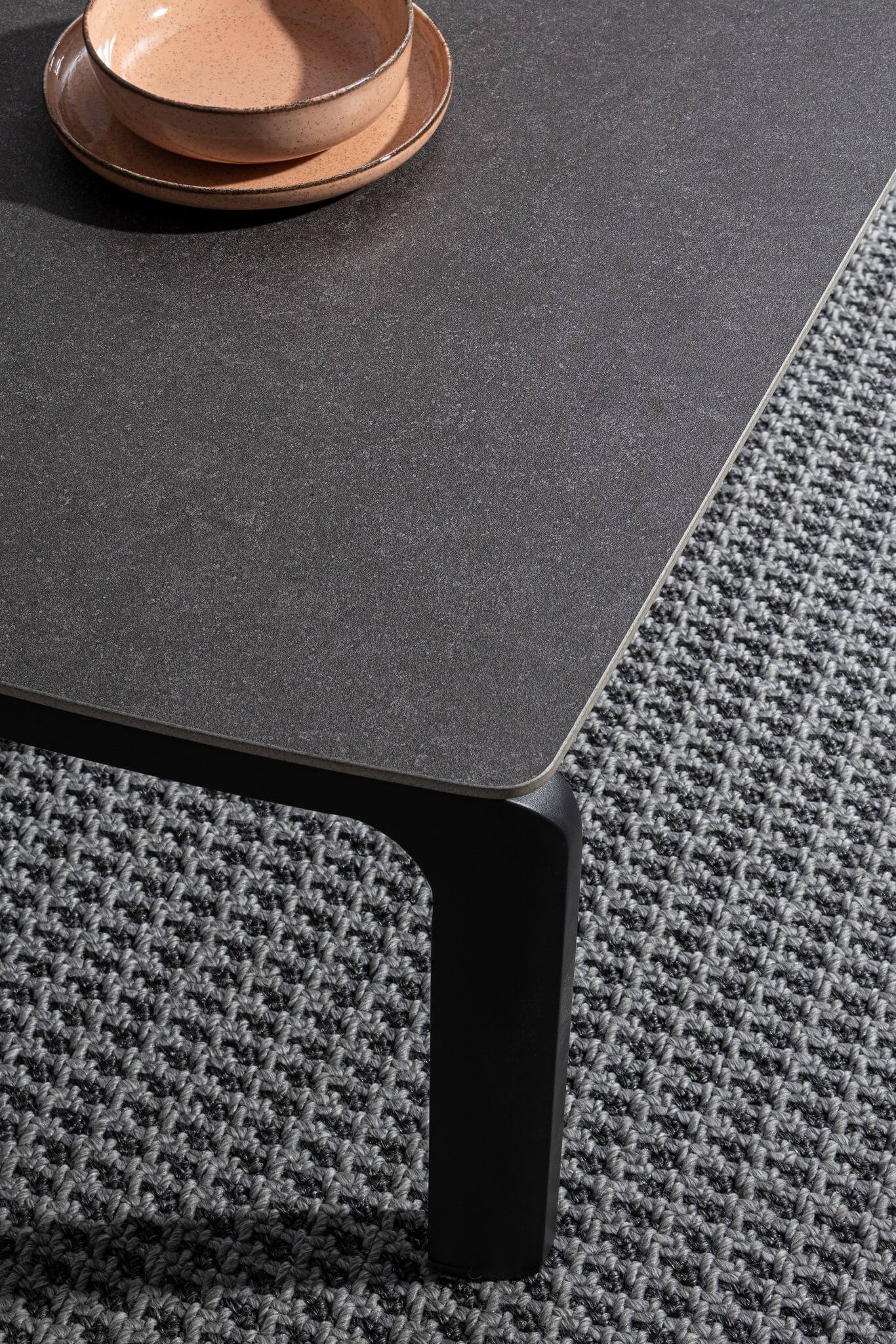 Blat tarasowego stolika kawowego wykonany jest z trwałej ceramiki.