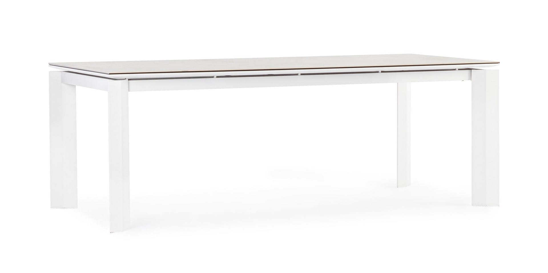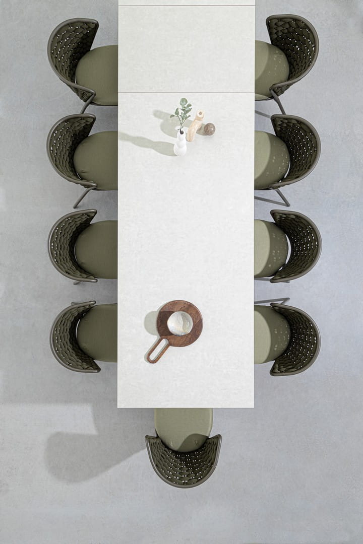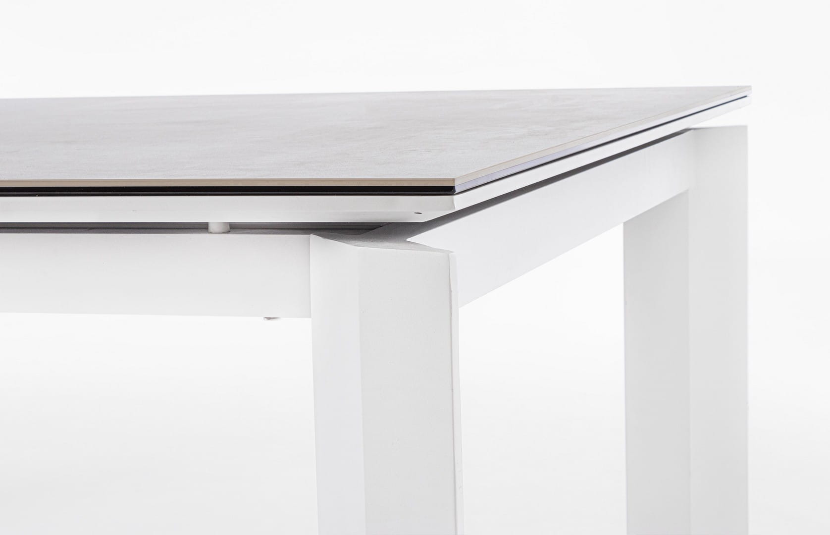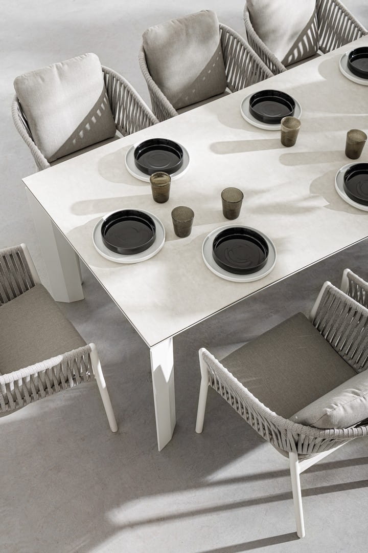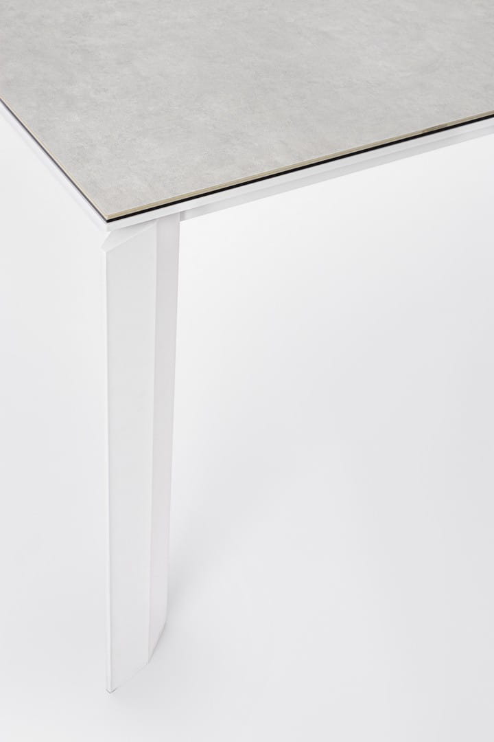 Blat wykonany z ceramiki na szklanej podstawie (o łącznej grubości 9 mm) zachwyca estetyką i wyjątkową trwałością – jest odporny na zarysowania, działanie promieni UV i wysoką temperaturę. Dzięki zastosowaniu stali nierdzewnej w elementach montażowych, stół cechuje się dodatkową stabilnością i długowiecznością.