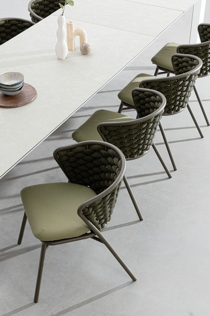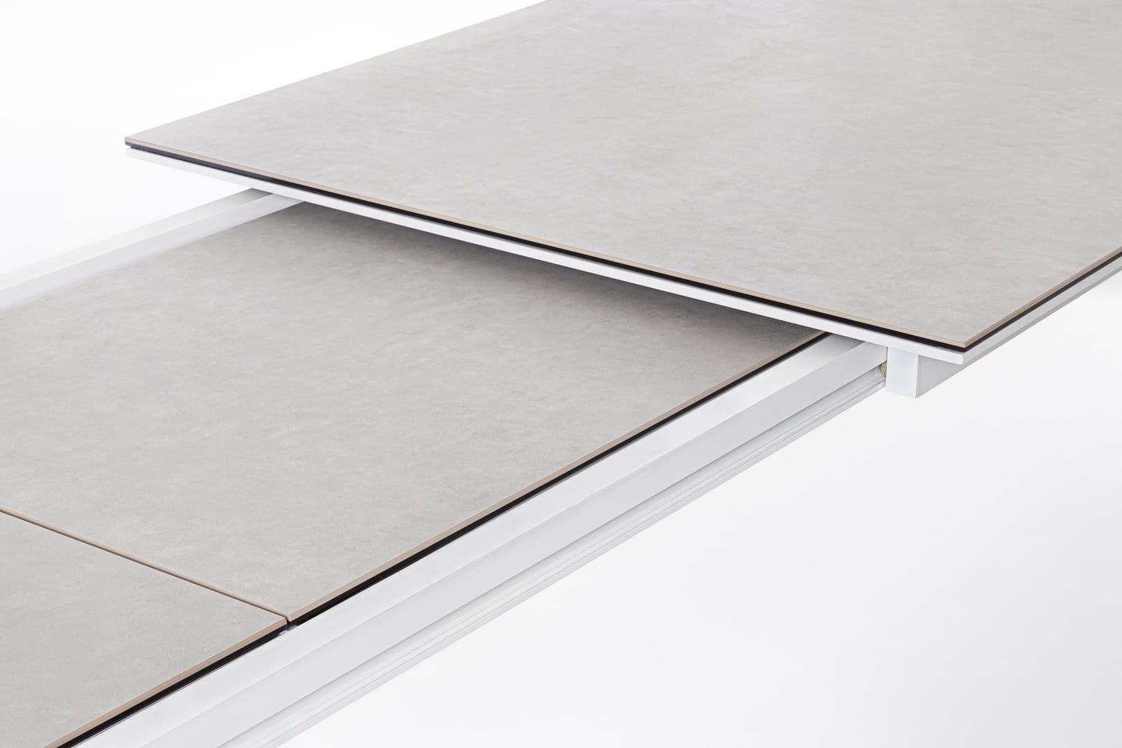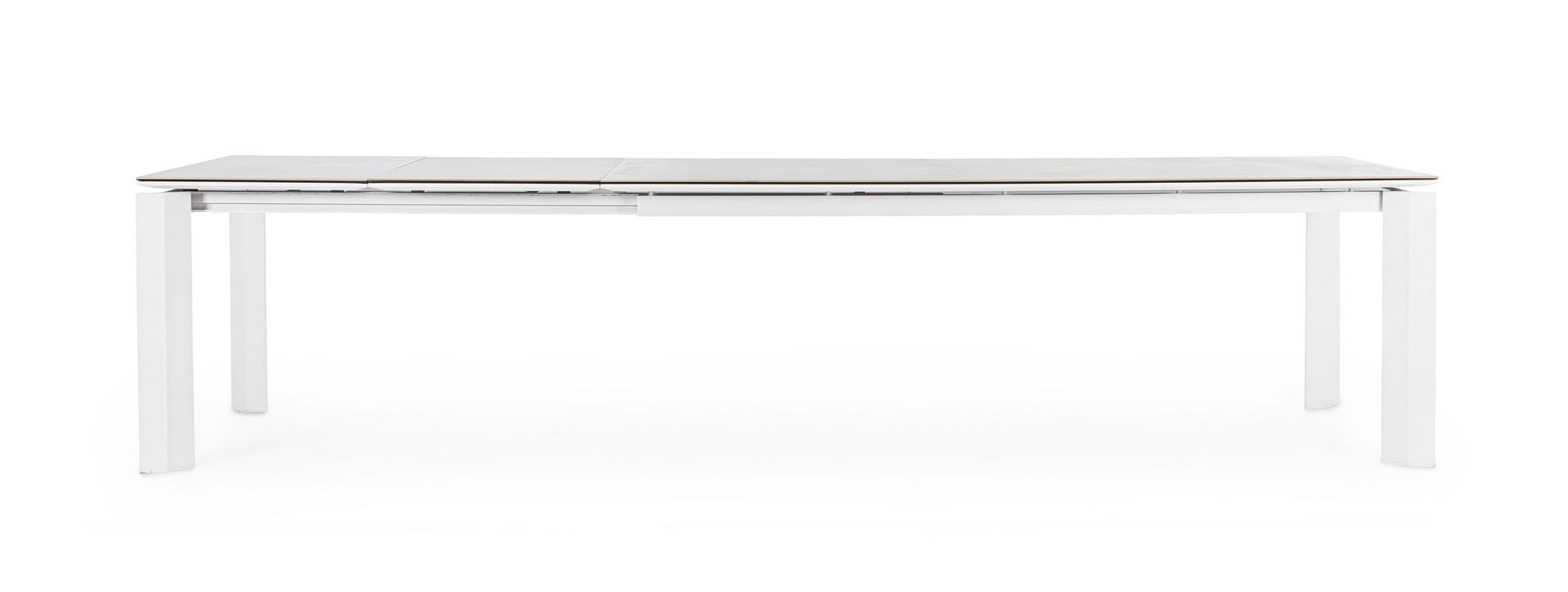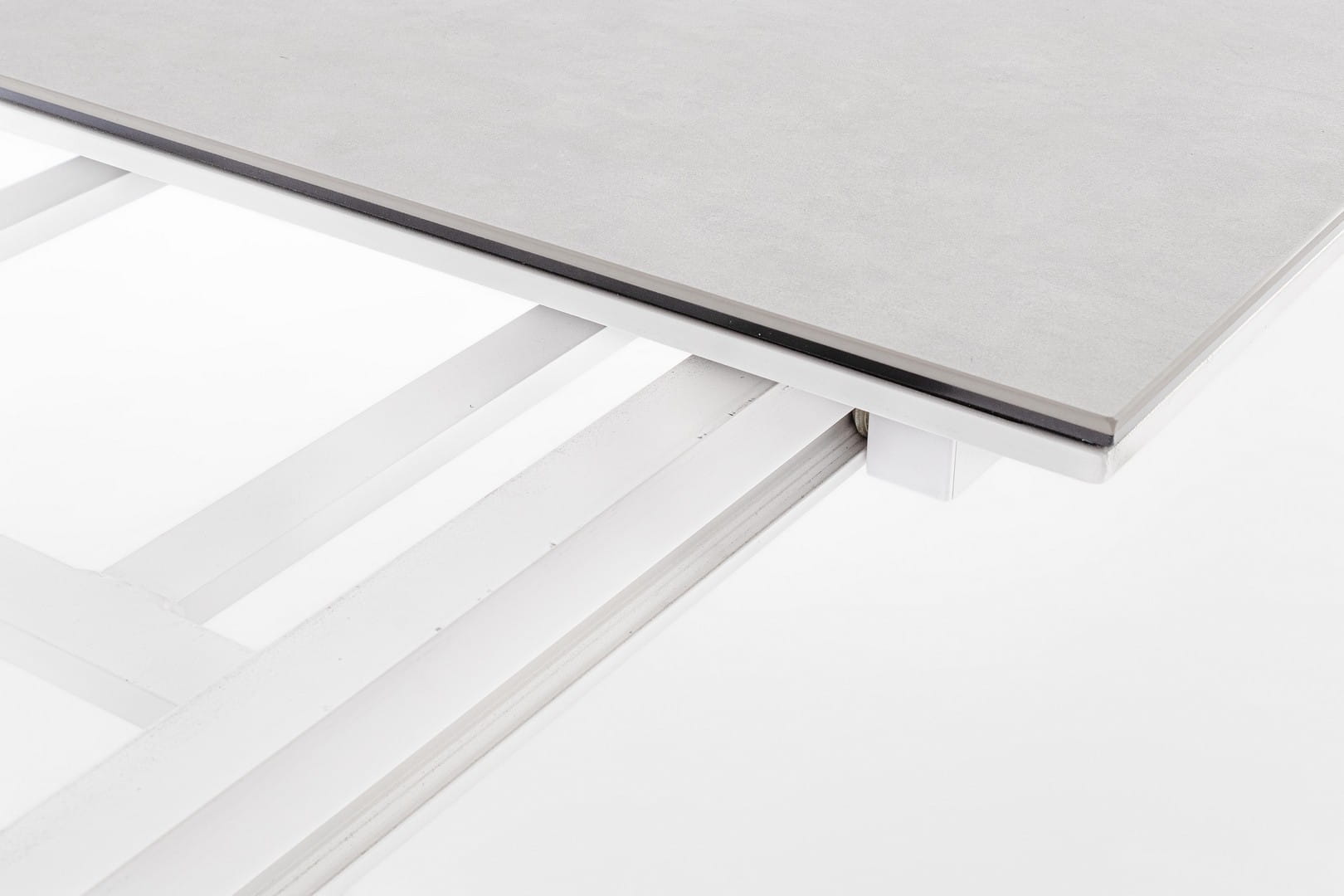 Blat wykonany z ceramiki na szklanej podstawie (o łącznej grubości 9 mm) zachwyca estetyką i wyjątkową trwałością – jest odporny na zarysowania, działanie promieni UV i wysoką temperaturę. Dzięki zastosowaniu stali nierdzewnej w elementach montażowych, stół cechuje się dodatkową stabilnością i długowiecznością.
