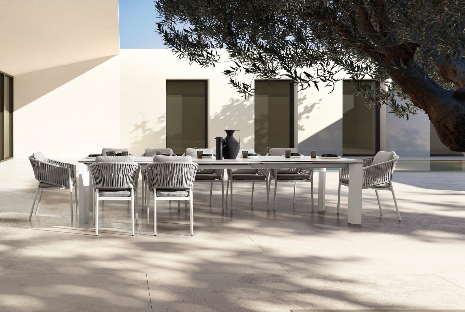 Stół Otavio to nowoczesna propozycja dla miłośników minimalistycznego designu i trwałych rozwiązań ogrodowych. Solidna konstrukcja z aluminium malowanego proszkowo (poliester) zapewnia odporność na warunki atmosferyczne i korozję, a jednocześnie nadaje meblowi elegancki, matowy wygląd.