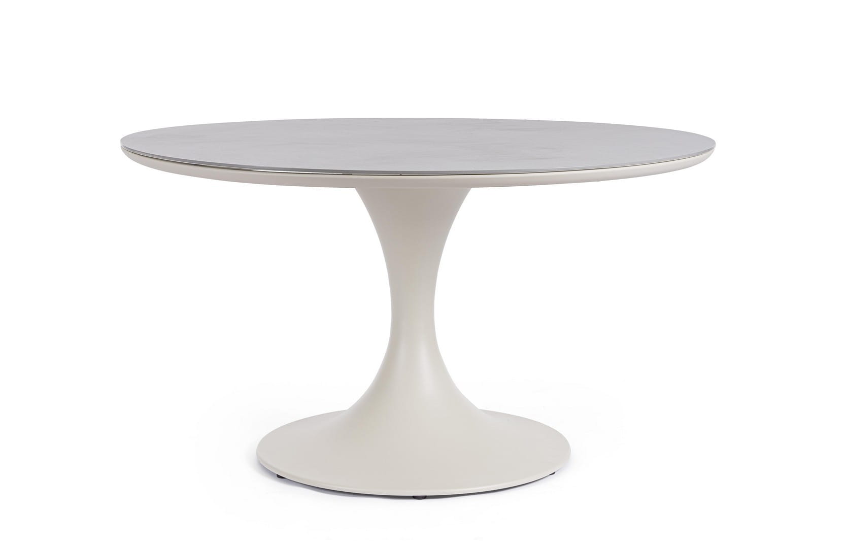 Ogrodowy stół jadalniany okrągły na jednej nodze Arnold piaskowy ø120