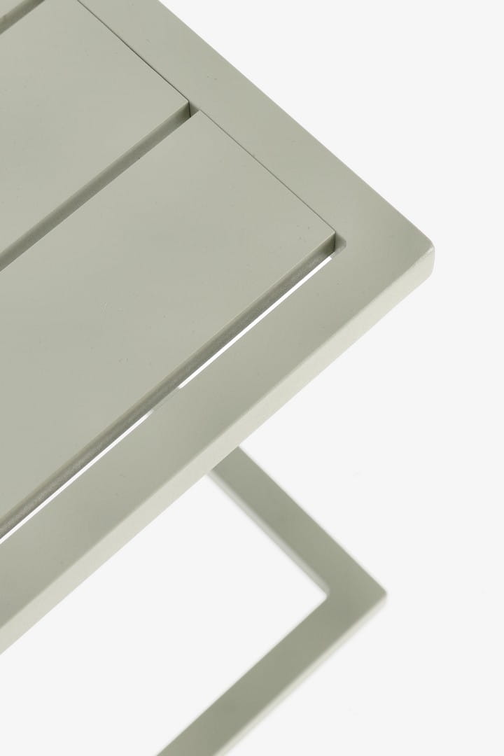 Wykonany z aluminium malowanego proszkowo z powłoką poliestrową, stolik jest odporny na działanie czynników atmosferycznych, w tym deszczu, promieni UV i korozji. Dzięki temu doskonale nadaje się do użytku zewnętrznego przez cały sezon.