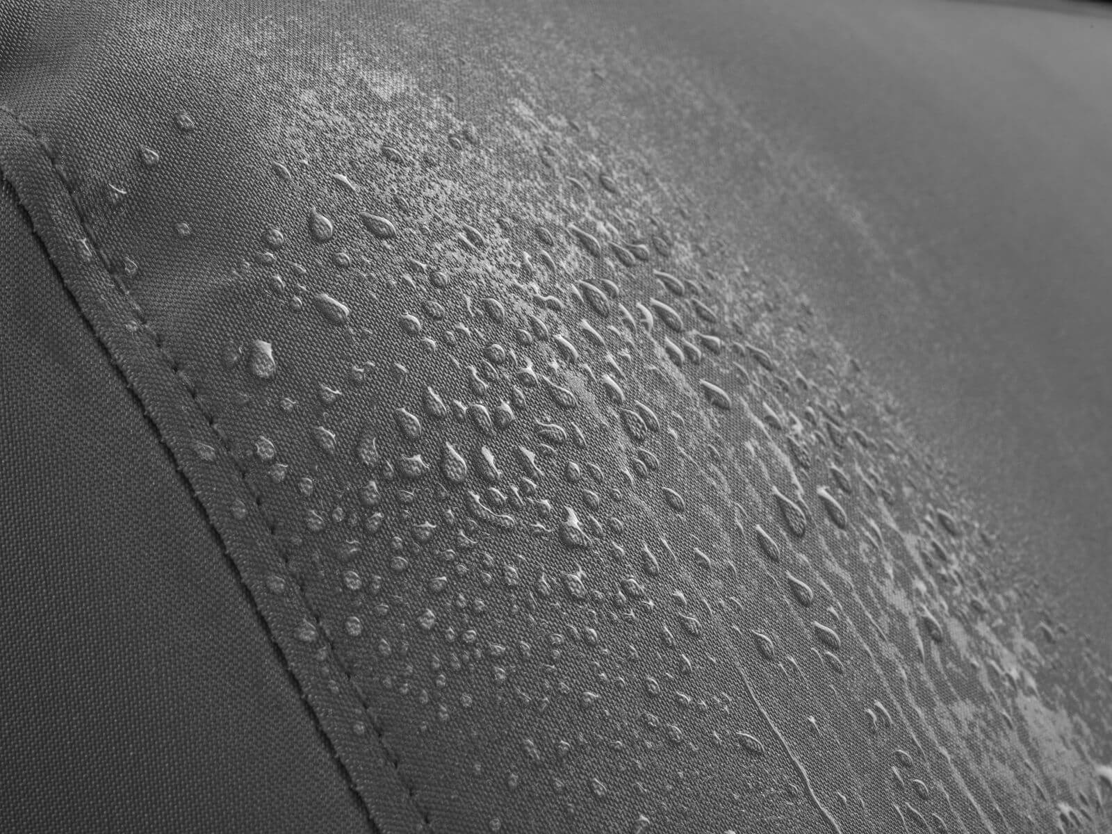 Ogrodowy stolik kawowy pokryty jest ciemno szarą tkaniną Vinylpex (kolor W07), która posiada powłokę hydrofobową, zapobiegającą wchłanianiu płynów. Ponadto materiał jest niezwykle odporny na ścieranie (test Martindale 102500, 695 g/m², skład powłoki: 95% PVC, 5% PU). Tkanina posiada powłokę antybakteryjną.