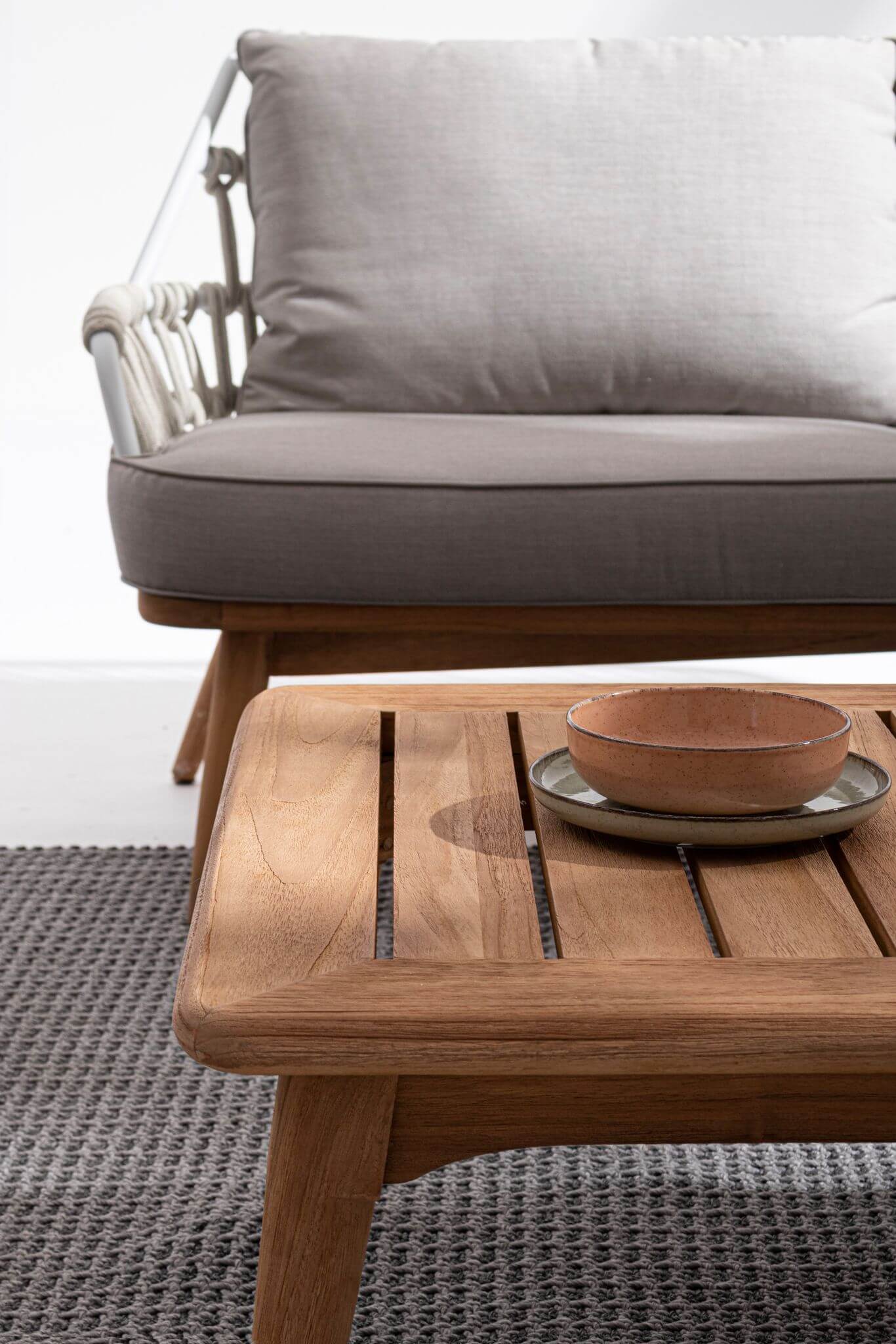 Ogrodowy stolik kawowy z drewna tekowego Nina