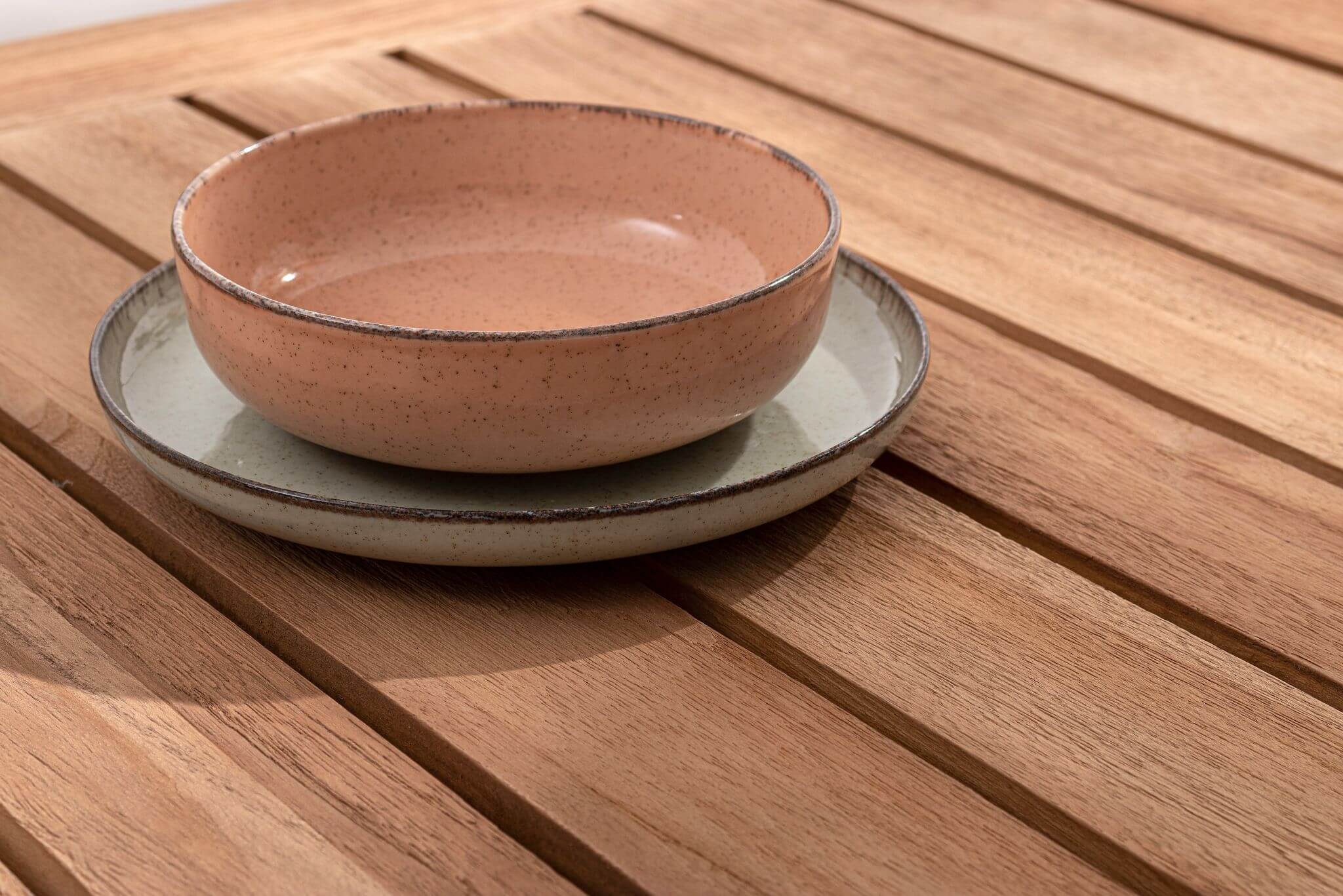 Środki ostrożności i pielęgnacja: ciesz się meblem ogrodowym przez lata - regularnie go czyść, pielęgnuj, a w okresach nieużywania nie narażaj go na warunki atmosferyczne. Aby zachować pierwotny wygląd mebla, zaleca się pielęgnację raz lub kilka razy w roku, gdy tylko kolor zaczyna blaknąć. Myj wodą z łagodnym mydłem, podążając za słojami drewna, aby lepiej usunąć kurz lub brud. Intensywnie spłukuj czystą wodą. Niezwykle ważne jest dokładne wyczyszczenie mebla przed olejowaniem, ponieważ zabrudzona powierzchnia może powodować powstawanie śladów grzybów. Zastosuj olej do mebli ogrodowych, który chroni i odżywia drewno. Postępuj zgodnie z instrukcjami producenta oleju, którego używasz. Śruby należy regularnie sprawdzać i dokręcać. Nie przykrywaj produktu materiałami, które nie przepuszczają powietrza (na przykład matą stołową z pcv lub tworzywa sztucznego). Chroń przed wilgocią i niskimi temperaturami. Wskazane jest przechowywanie produktu w suchym i przewiewnym miejscu.