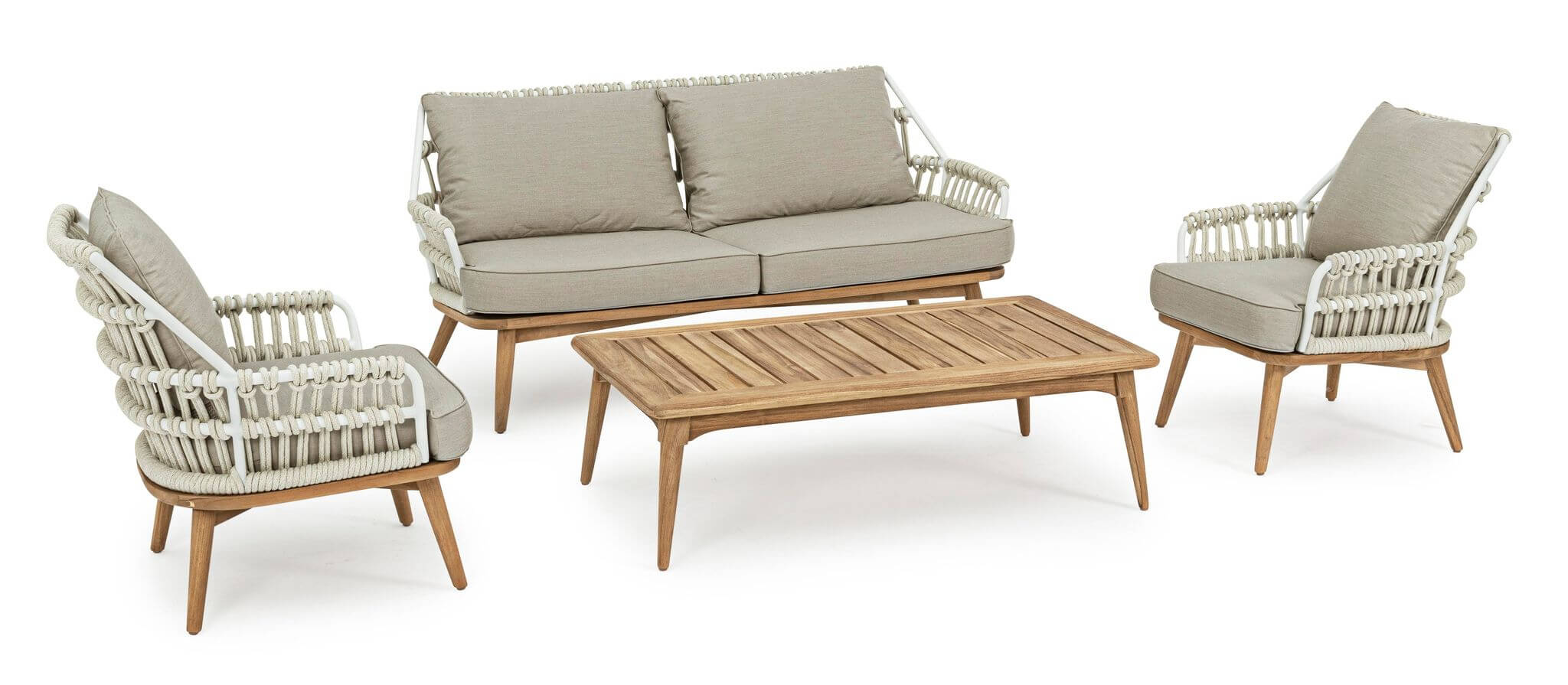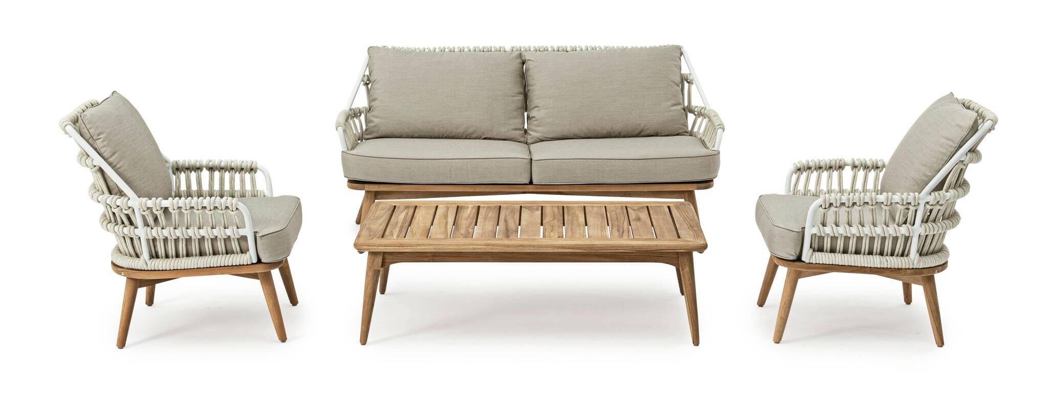 Drewniany stolik kawowy, projektu włoskiej marki Bizzotto - idealne dopełnienie nowoczesnej aranżacji ogrodu, tarasu czy balkonu.
