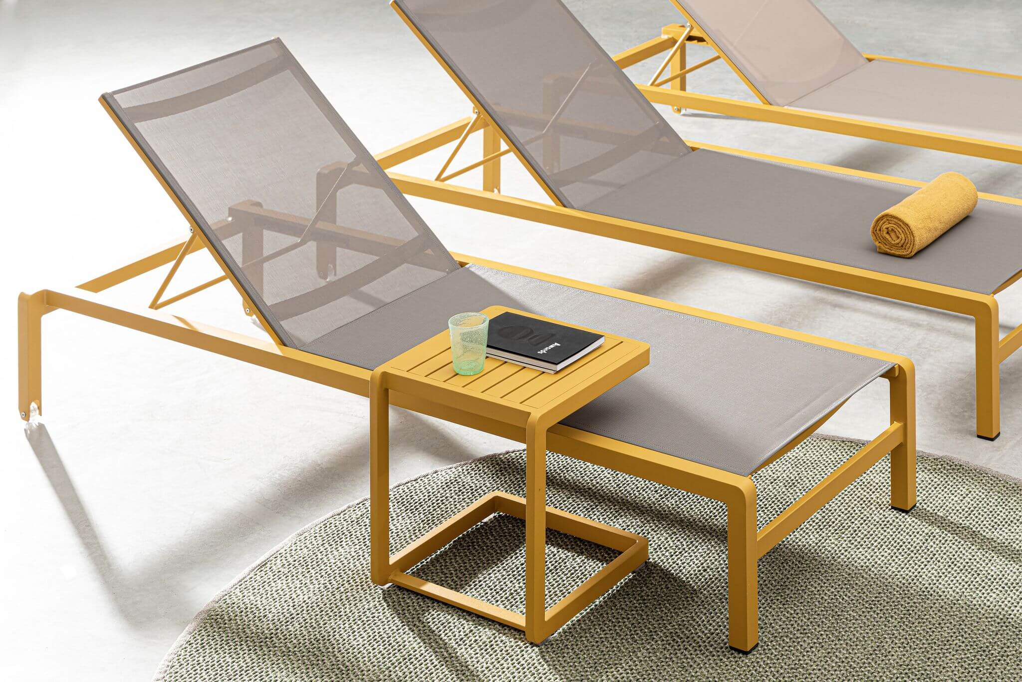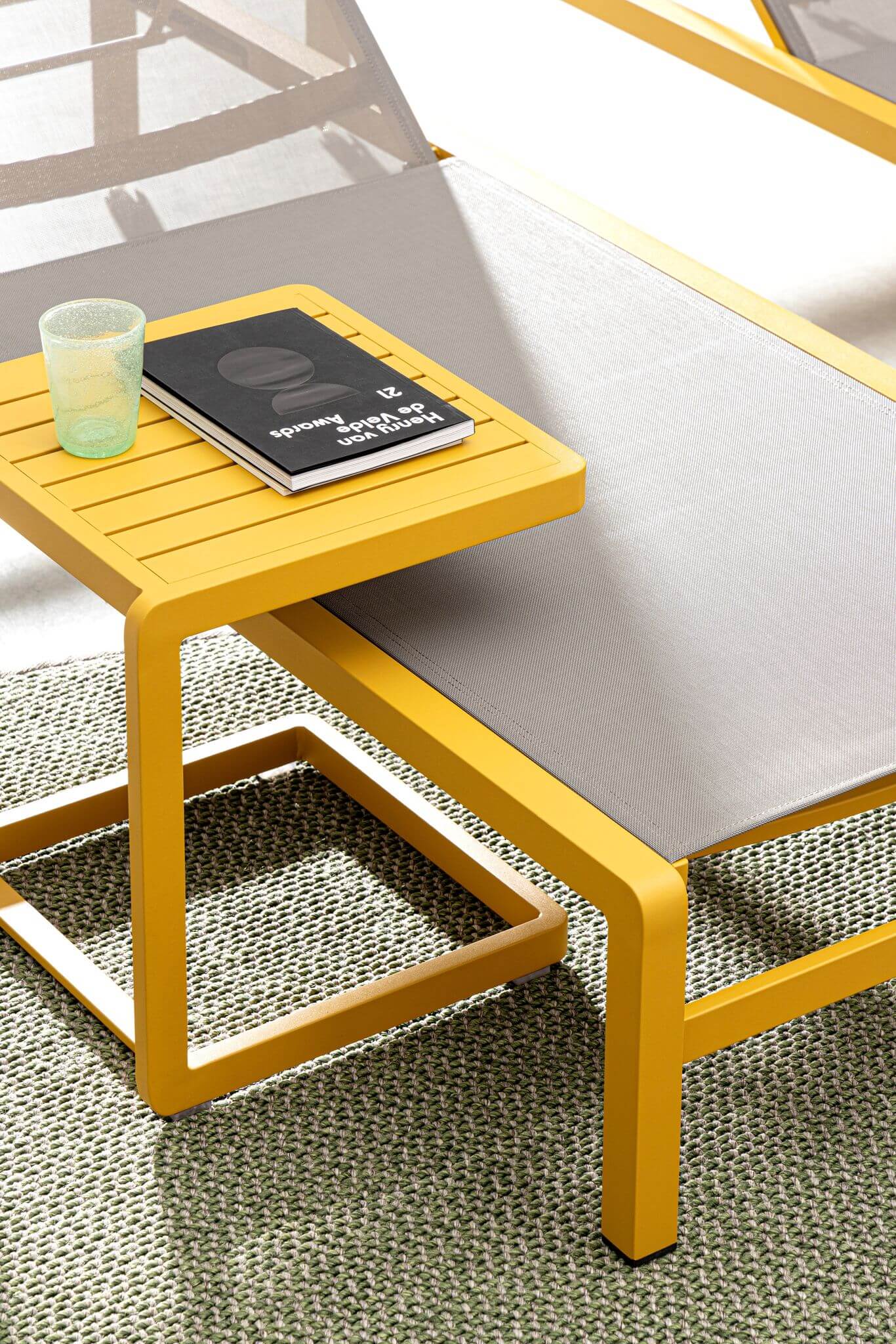 Stolik wykonany jest z aluminium malowanego proszkowo, odpornego na warunki atmosferyczne. Żółty kolor nadaje mu nowoczesnego i energetycznego wyglądu, który będzie pasował do różnych aranżacji ogrodowych.
