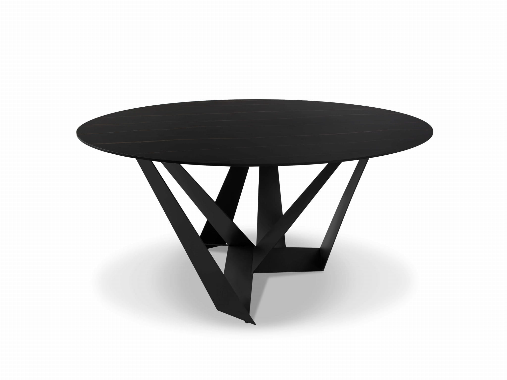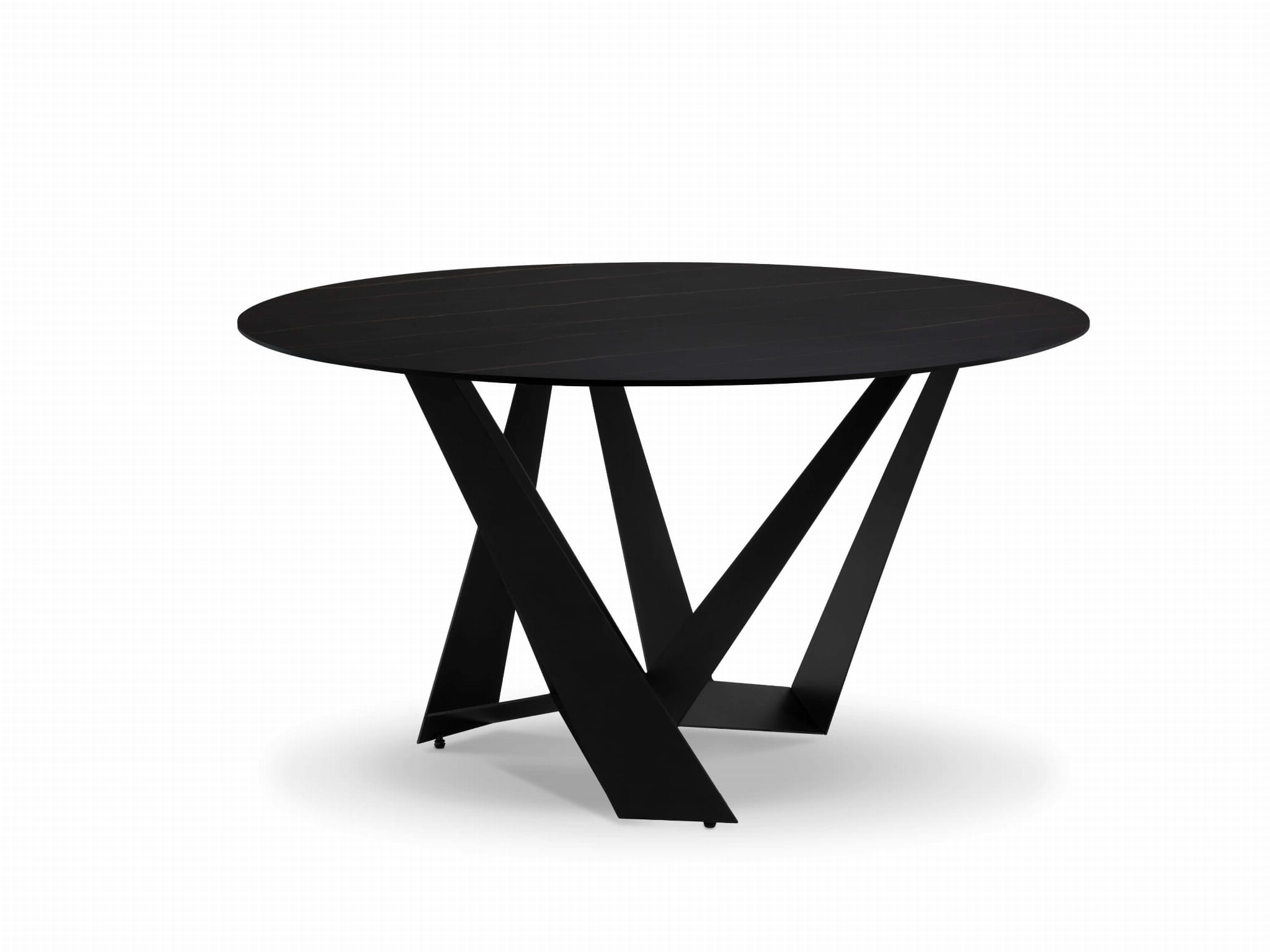 Okrągły stół jadalniany Salerne o eleganckim blacie i unikalnych nogach.