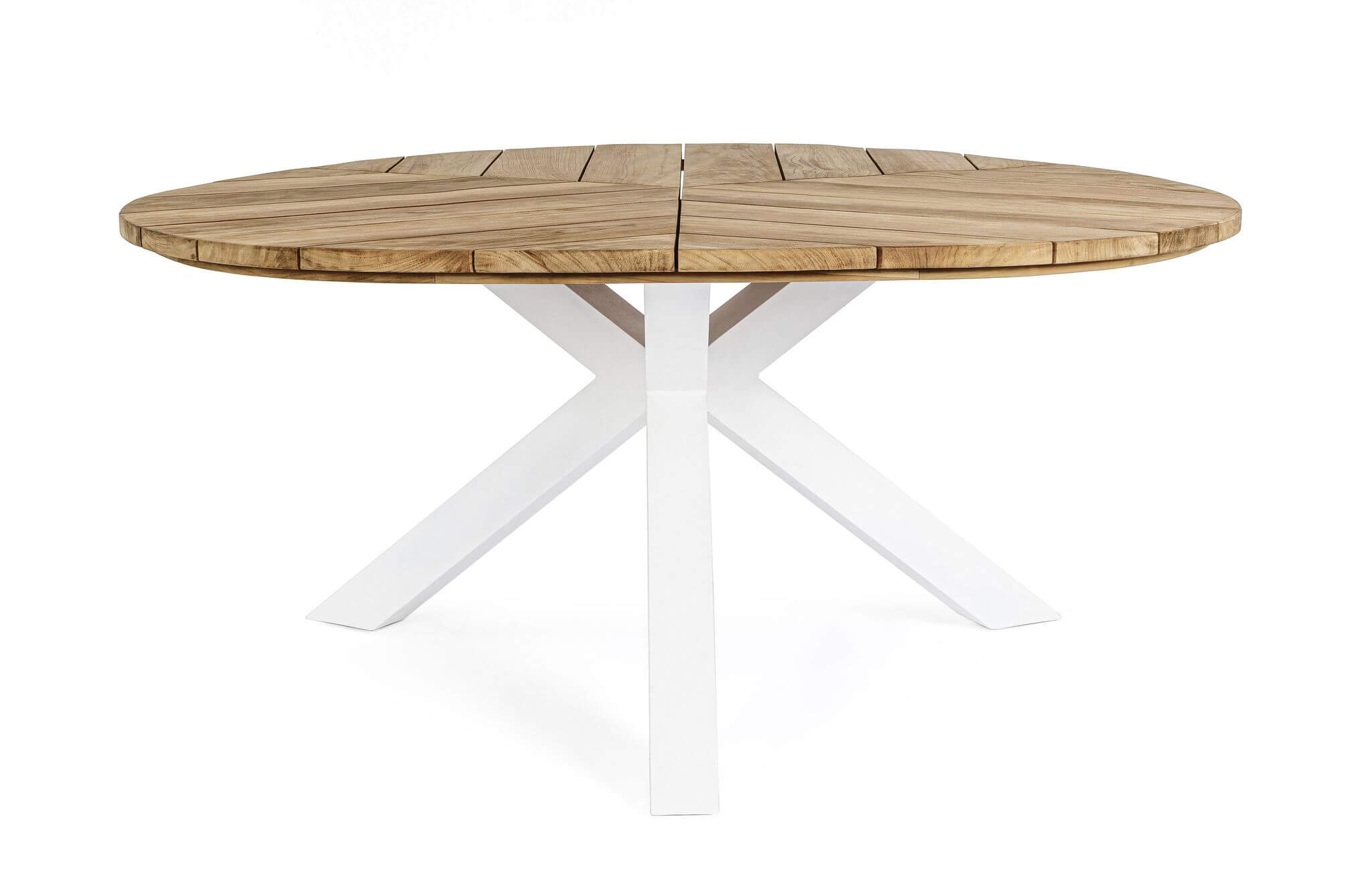 Blat ogrodowego stołu zrobiony jest z drewna tekowego (klasa A) z certyfikatem SVLK, świadczącym o legalności pozyskania materiału. Aluminiowe, białe nogi malowane są proszkowo poliestrem. Śruby ze stali ocynkowanej.