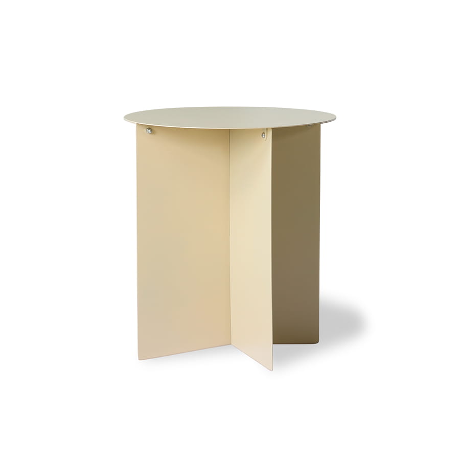 Wykonany starannie z metalu i wykończony w kremowym kolorze. Okrągły blat i postawa złożona z prostych, trzech prostokątnych blach. Prosta, lecz urzekająca kompozycja. Kremowy, delikatny kolor będzie subtelnym akcentem w każdej aranżacji.